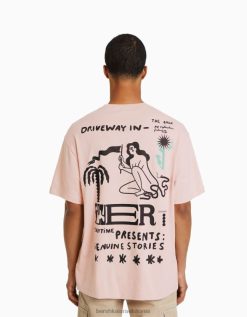 גברים חולצת טריקו מודפסת עם שרוולים קצרים בהתאמה נוחה אַחֵר 2L6JD2816 Bershka הַלבָּשָׁה