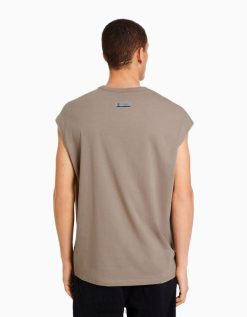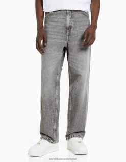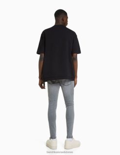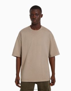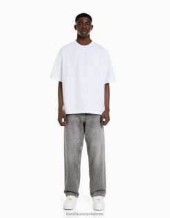 גברים חולצת טי עם שרוולים קצרים בגזרה משוחררת במיוחד עם הדפס רשת אפור 2L6JD2629 Bershka הַלבָּשָׁה
