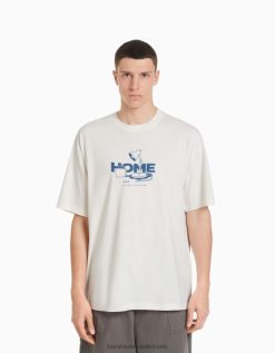 גברים חולצת טי עם שרוולים קצרים משוחררים במיוחד עם הדפס בִּלעָדִי 2L6JD2608 Bershka הַלבָּשָׁה
