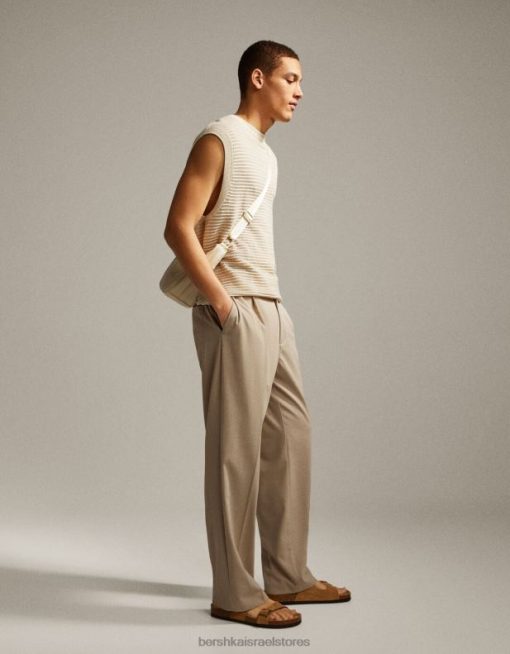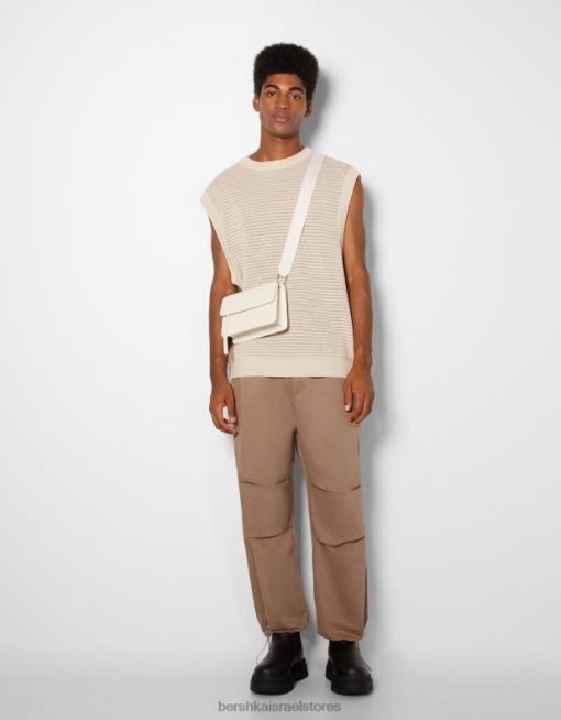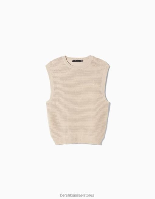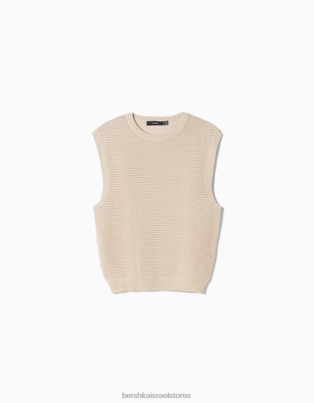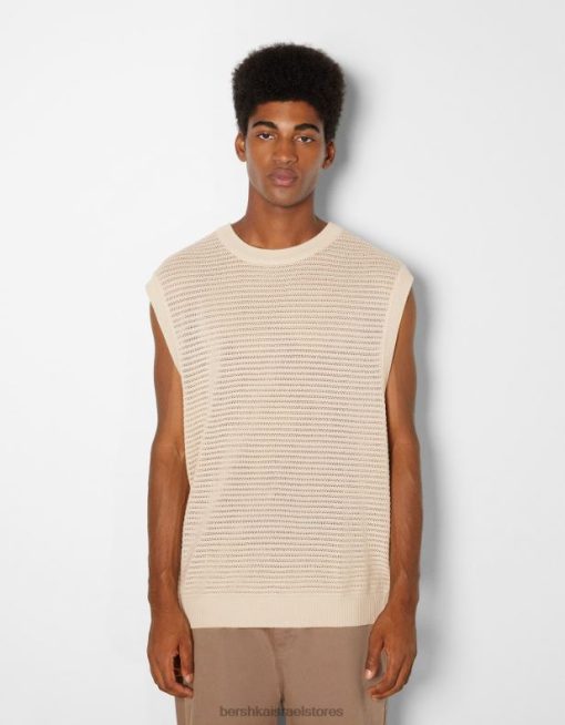 גברים אפוד סרוג רשת קרם 2L6JD3002 Bershka הַלבָּשָׁה