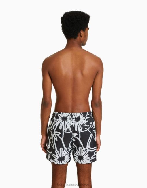 גברים בגד ים בהדפס פרחים לבן 2L6JD3402 Bershka הַלבָּשָׁה