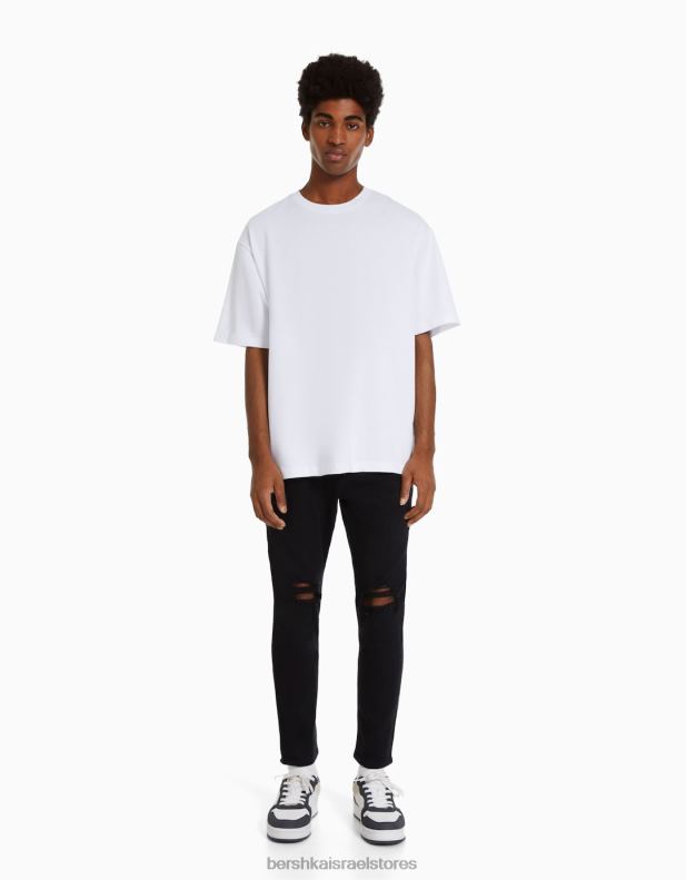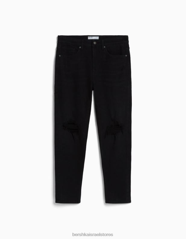 גברים ג’ינס בכושר גזר קרוע שָׁחוֹר 2L6JD3159 Bershka הַלבָּשָׁה