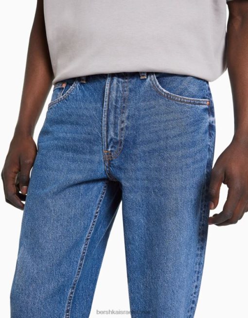 גברים ג’ינס וינטג’ בהתאמה ישרה כְּחוֹל 2L6JD3141 Bershka הַלבָּשָׁה