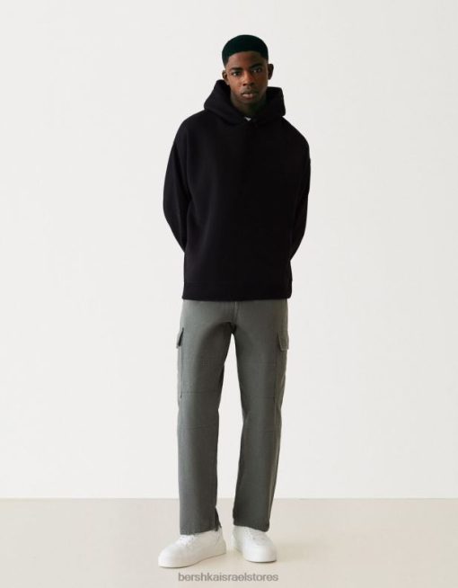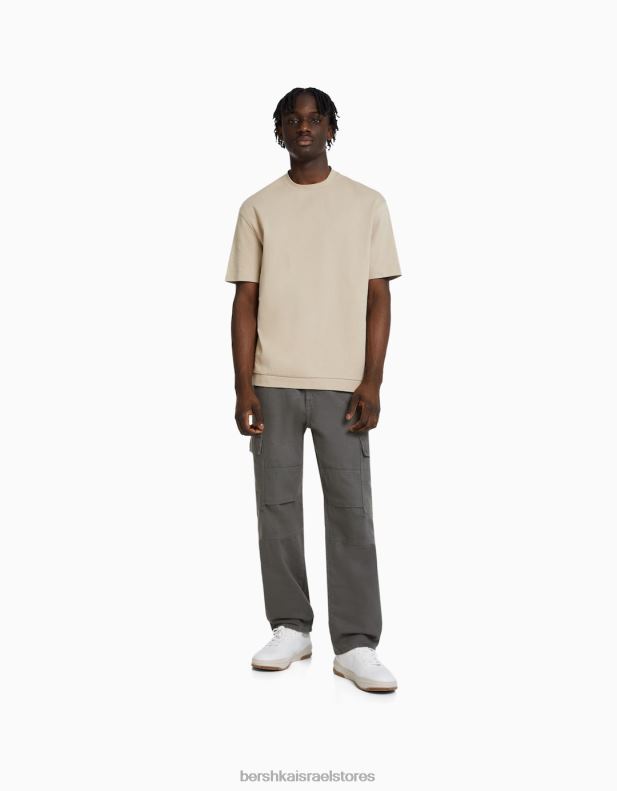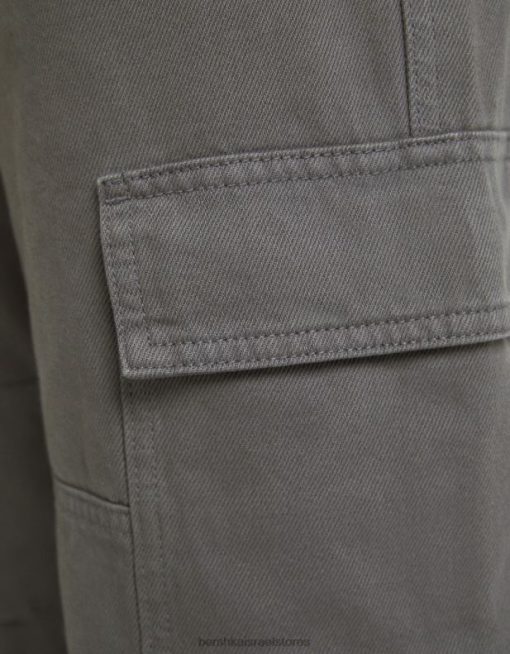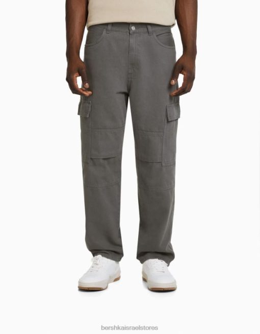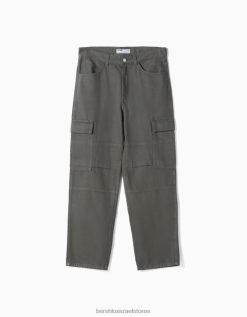 גברים ג’ינס מטען רחב רגליים אפור כהה 2L6JD3122 Bershka הַלבָּשָׁה