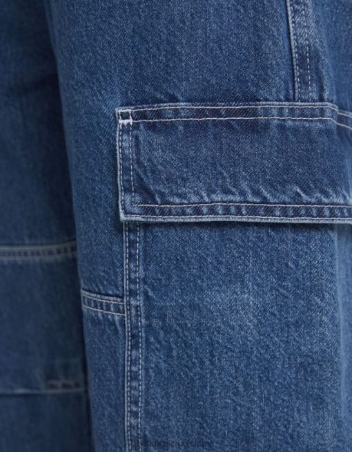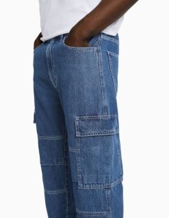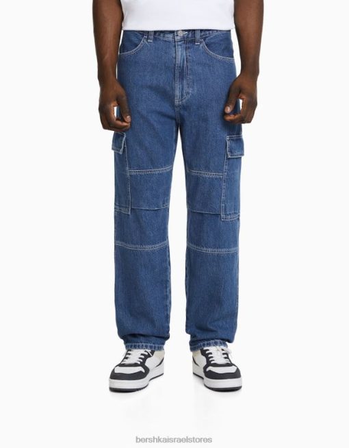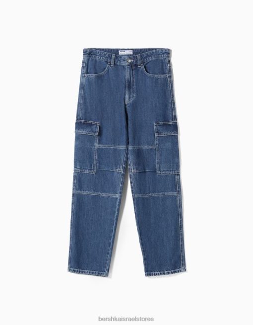 גברים ג’ינס מטען רחב רגליים כְּחוֹל 2L6JD3119 Bershka הַלבָּשָׁה