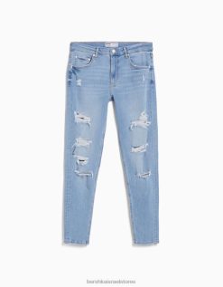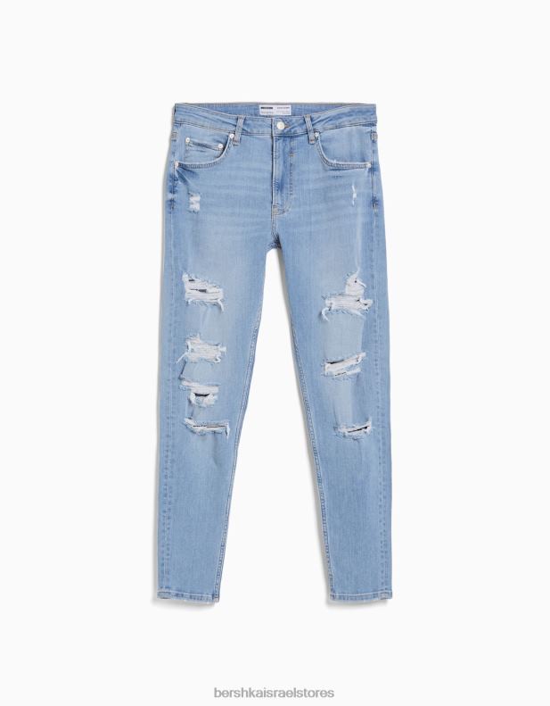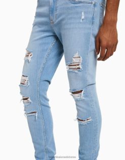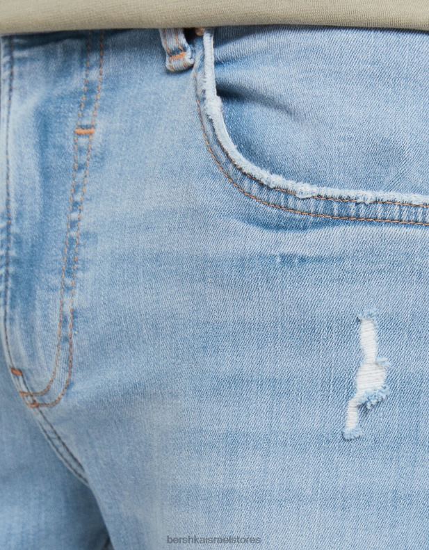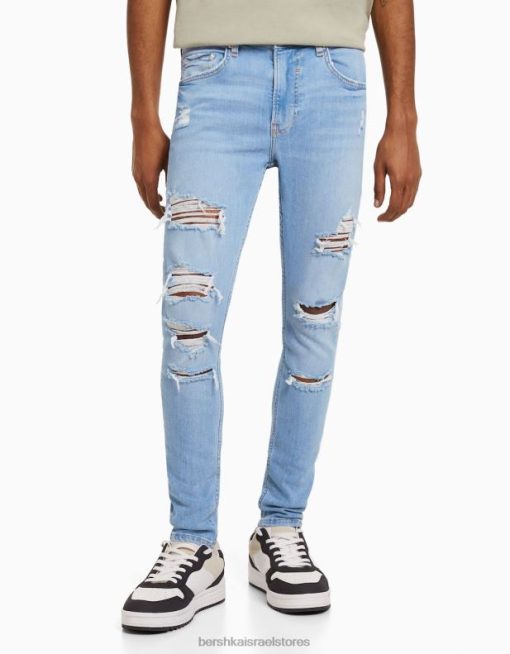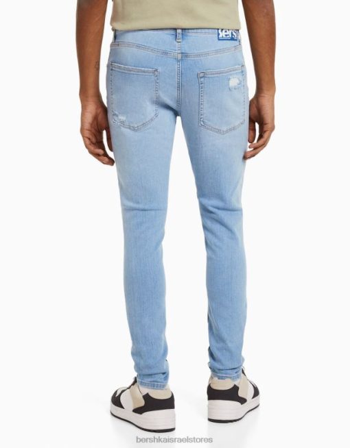 גברים ג’ינס סופר סקיני קרוע כחול בהיר 2L6JD3191 Bershka הַלבָּשָׁה