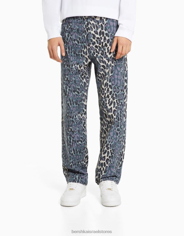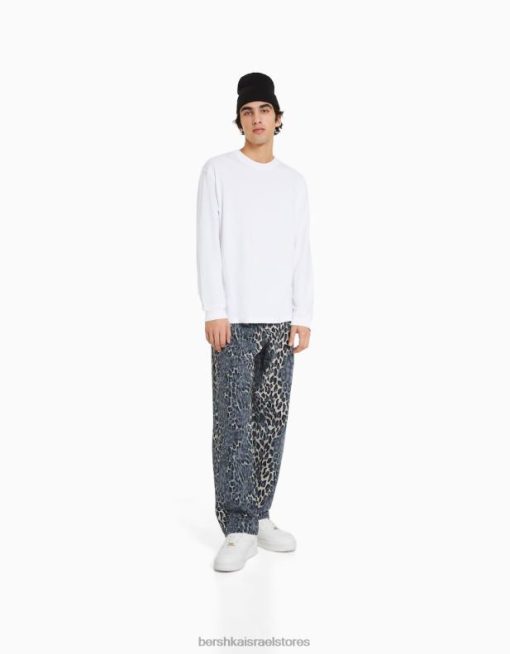 גברים ג’ינס רחב בהדפס בעלי חיים סָגוֹל 2L6JD3188 Bershka הַלבָּשָׁה