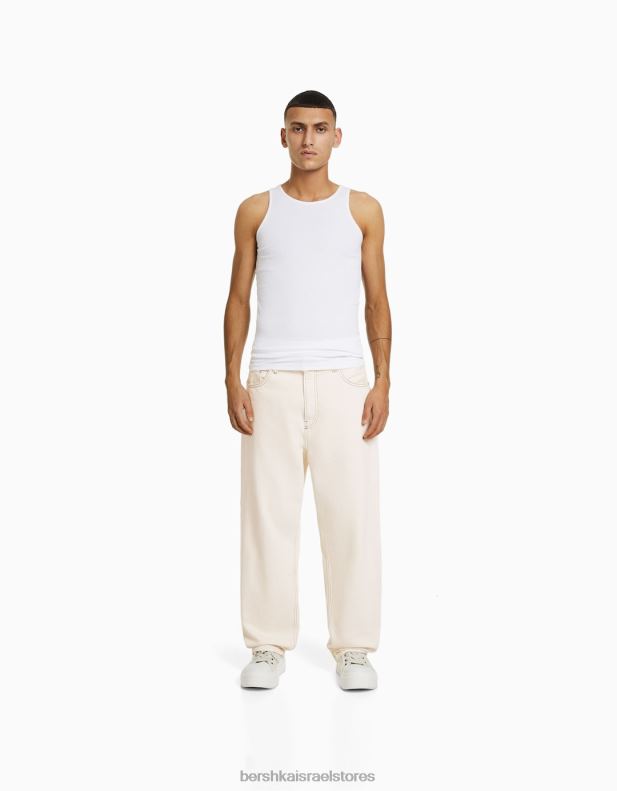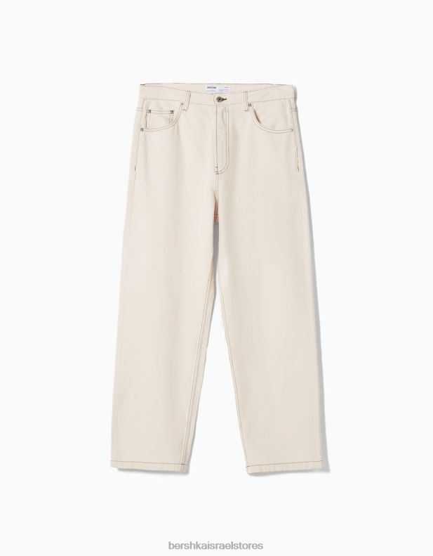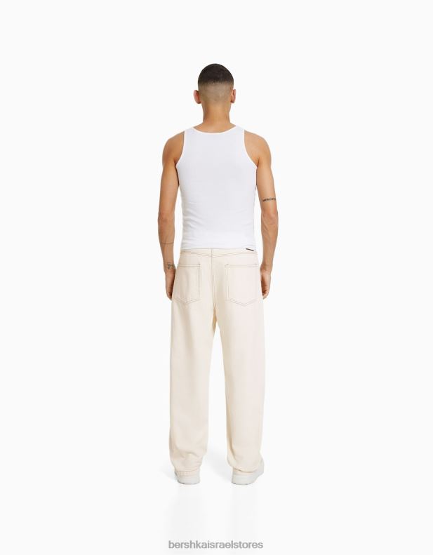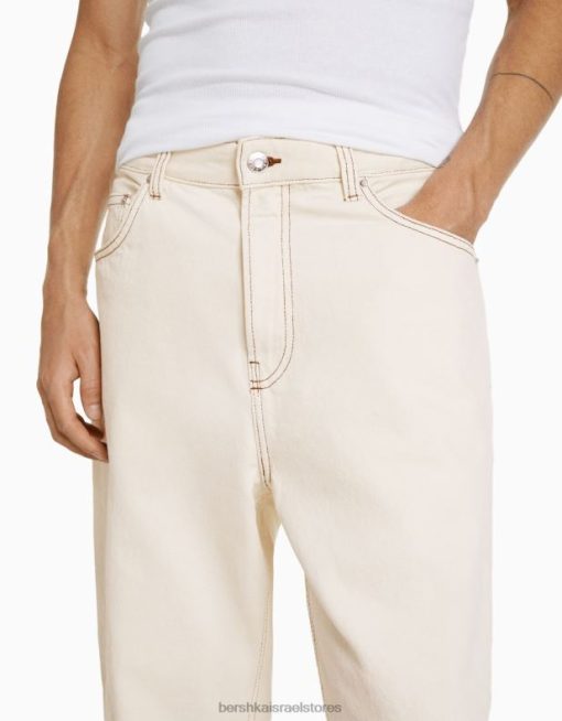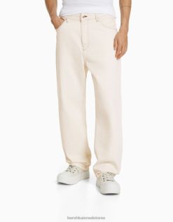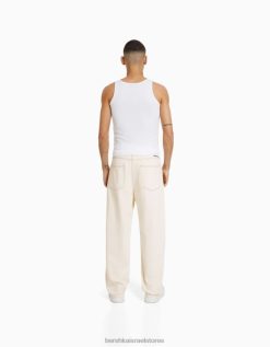 גברים ג’ינס רחב צבעוני קרם 2L6JD3113 Bershka הַלבָּשָׁה