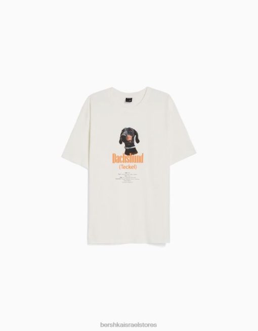 גברים הדפס חולצת טריקו עם שרוול קצר בהתאמה רגילה צבע קרם 2L6JD2721 Bershka הַלבָּשָׁה