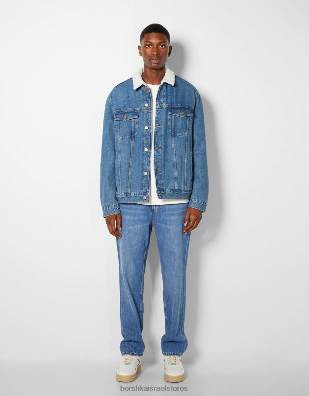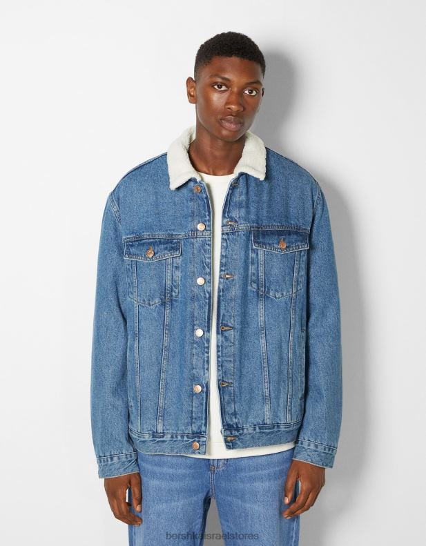 גברים ז’קט ג’ינס עם בטנת פליסה כְּחוֹל 2L6JD3101 Bershka הַלבָּשָׁה