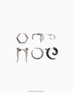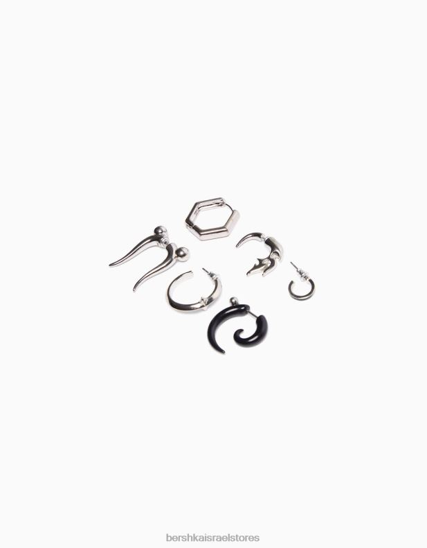 גברים חבילה של 6 עגילי אזניים כסף 2L6JD3666 Bershka אביזרים