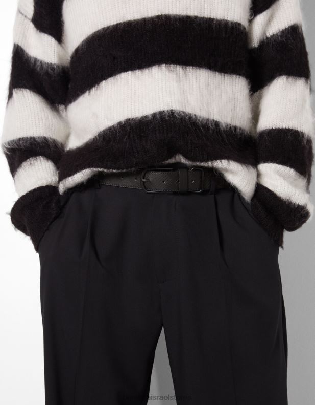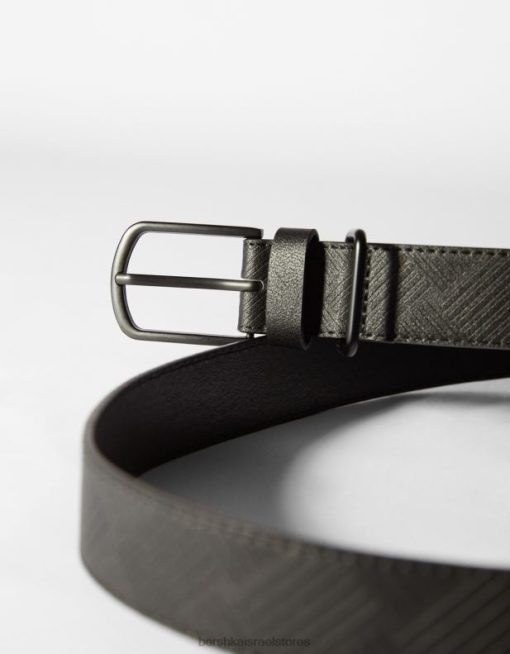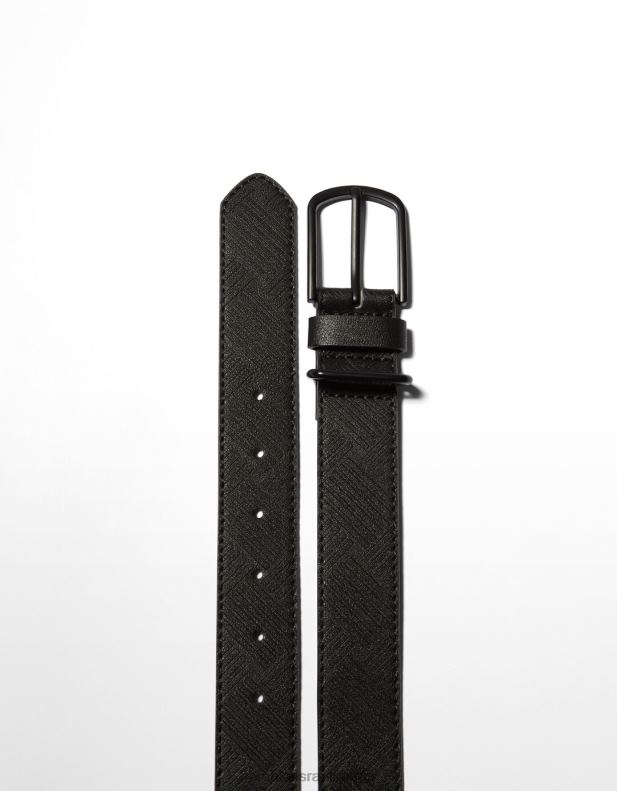 גברים חגורת עור מלאכותית מובלטת שָׁחוֹר 2L6JD3637 Bershka אביזרים
