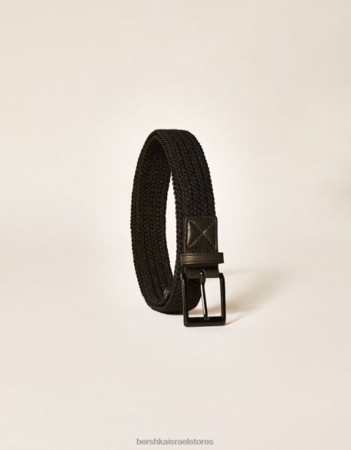גברים חגורת עור מלאכותית קלועה שָׁחוֹר 2L6JD3630 Bershka אביזרים