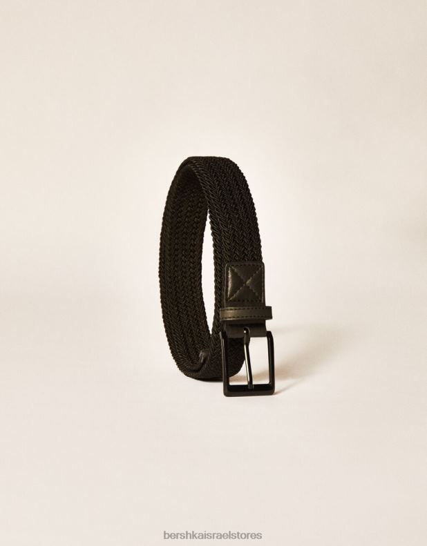 גברים חגורת עור מלאכותית קלועה שָׁחוֹר 2L6JD3627 Bershka אביזרים