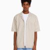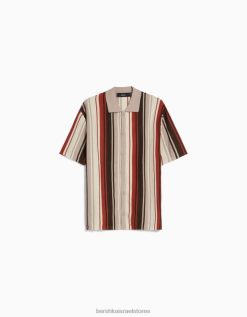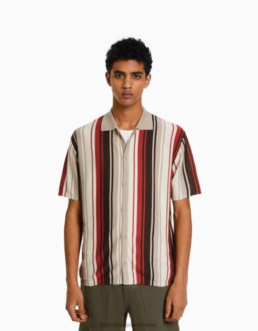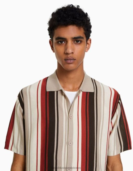 גברים חולצה בהדפס פסים אנכיים עם שרוול קצר אַחֵר 2L6JD2928 Bershka הַלבָּשָׁה