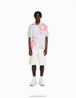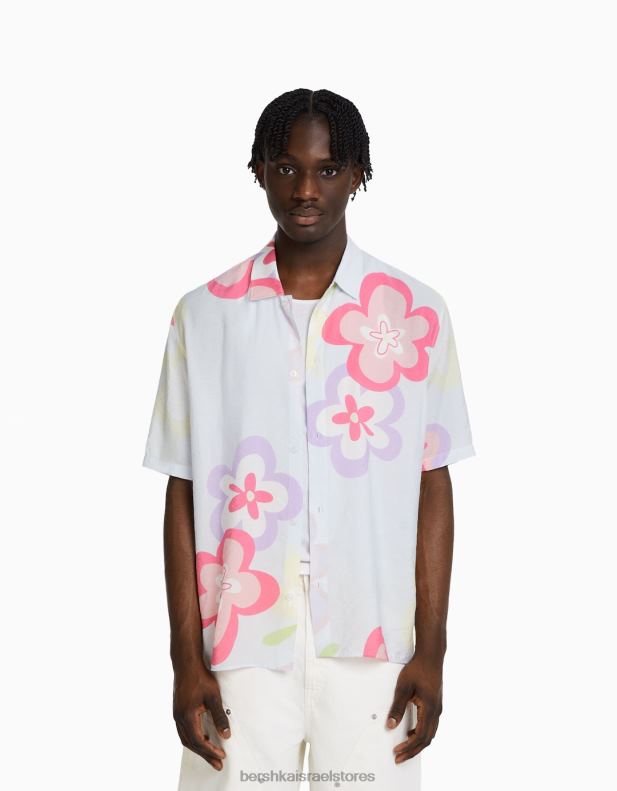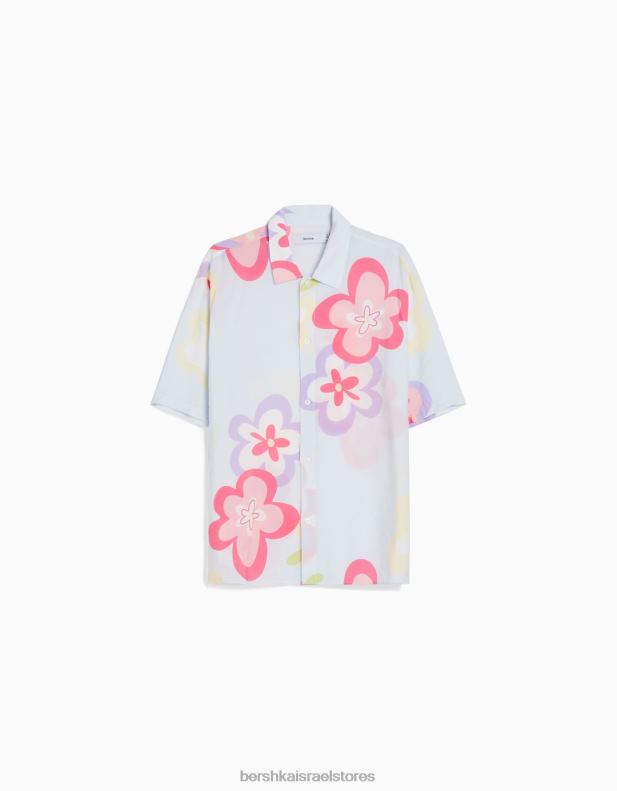 גברים חולצה בהדפס פרחוני עם שרוולים קצרים כחול בהיר 2L6JD2869 Bershka הַלבָּשָׁה