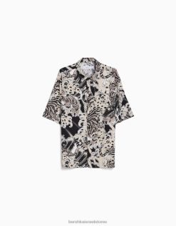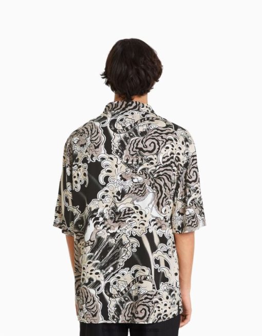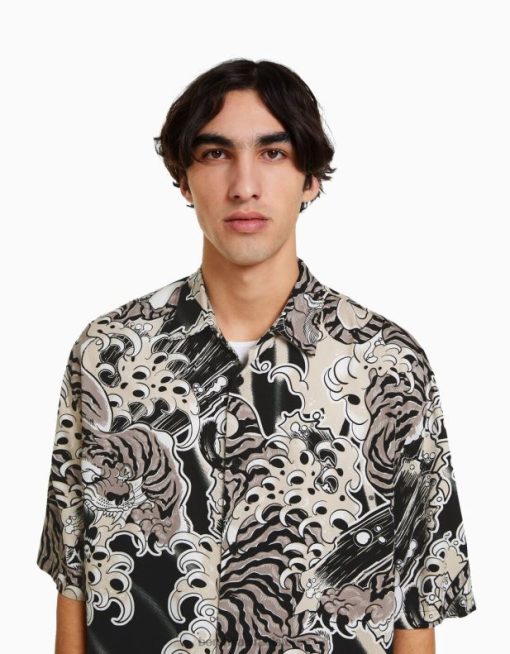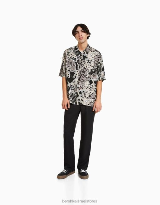 גברים חולצה מודפסת עם שרוולים קצרים שָׁחוֹר 2L6JD2871 Bershka הַלבָּשָׁה