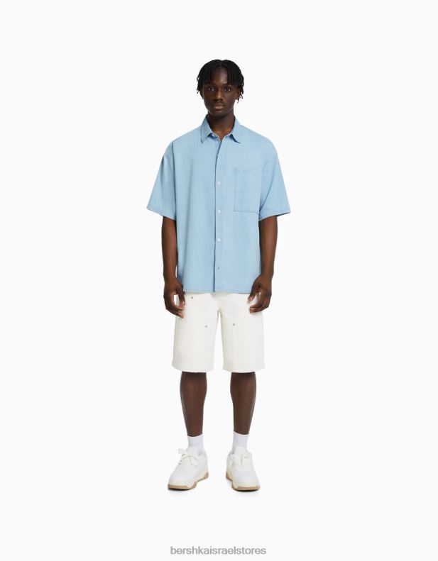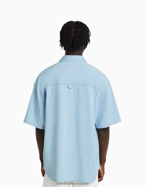 גברים חולצת אוברסייז עם שרוולים קצרים כחול בהיר 2L6JD2915 Bershka הַלבָּשָׁה