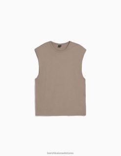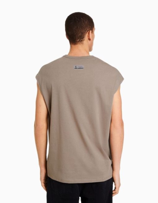 גברים חולצת טי אוברסייז ללא שרוולים אפור 2L6JD2810 Bershka הַלבָּשָׁה