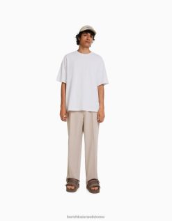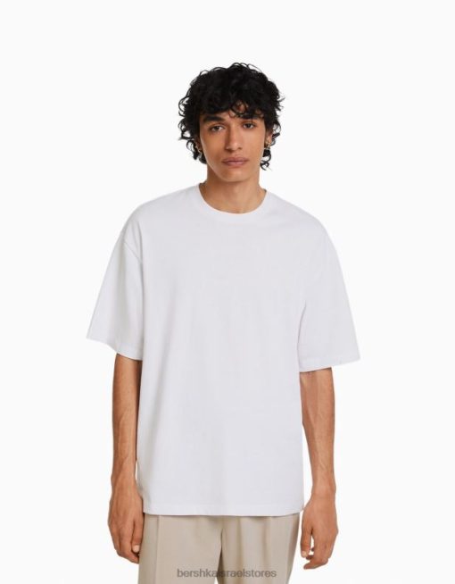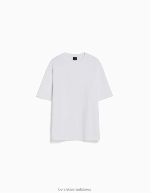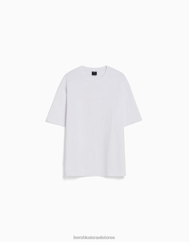 גברים חולצת טי אוברסייז מודפסת עם שרוול קצר לבן 2L6JD2683 Bershka הַלבָּשָׁה