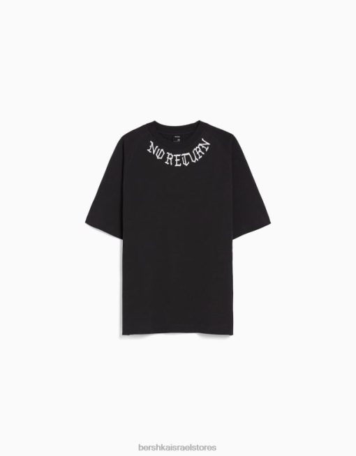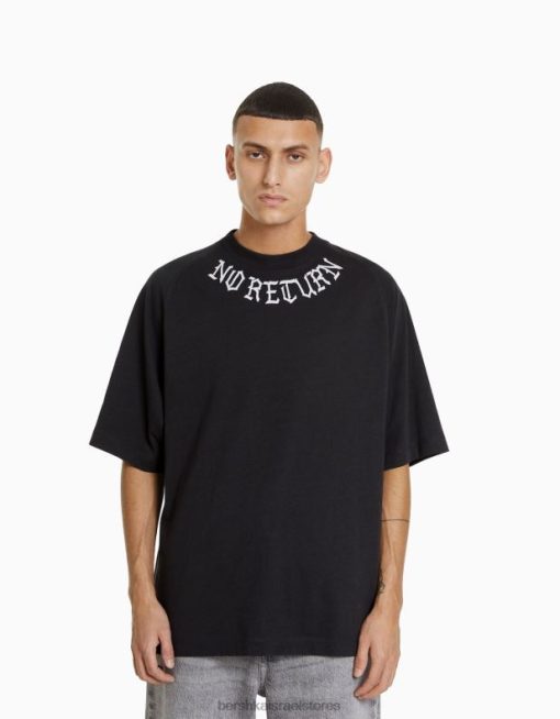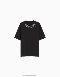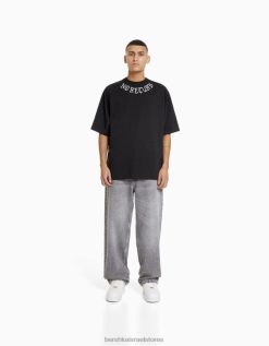 גברים חולצת טי אוברסייז מודפסת עם שרוול קצר אפור 2L6JD2632 Bershka הַלבָּשָׁה