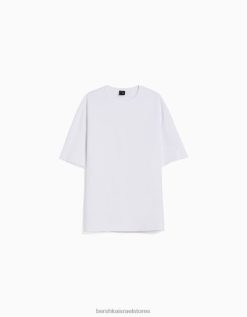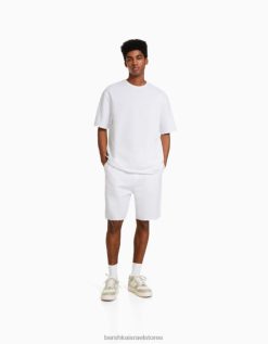 גברים חולצת טי דהויה עם שרוולים קצרים לבן 2L6JD2647 Bershka הַלבָּשָׁה