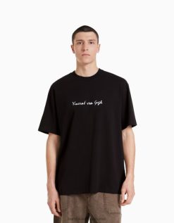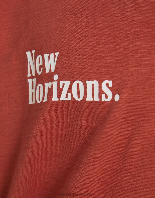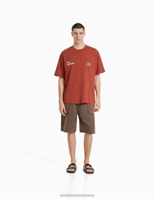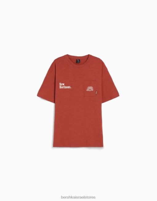 גברים חולצת טי מודפסת עם שרוולים קצרים עם כיס כתום כהה 2L6JD2834 Bershka הַלבָּשָׁה