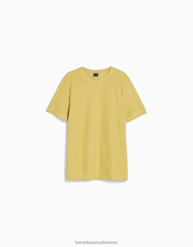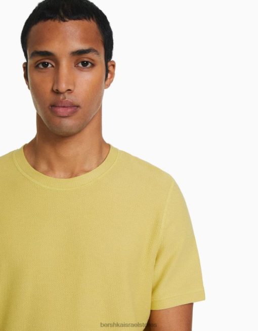 גברים חולצת טי עם שרוולים קצרים עם מרקם ליים 2L6JD2770 Bershka הַלבָּשָׁה