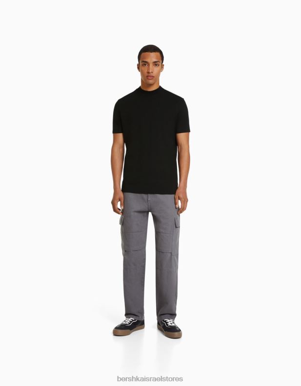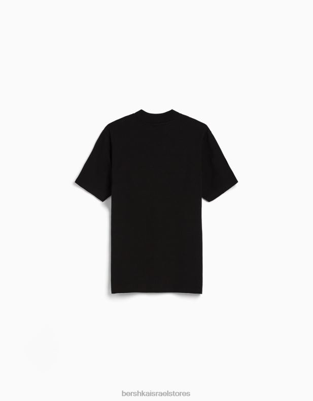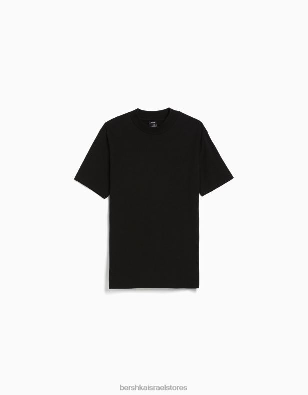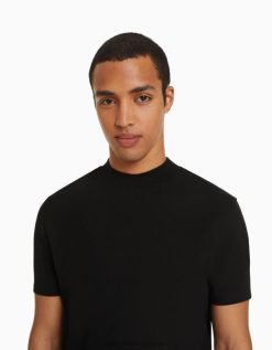 גברים חולצת טי עם שרוולים קצרים עם צווארון גבוה שָׁחוֹר 2L6JD2739 Bershka הַלבָּשָׁה