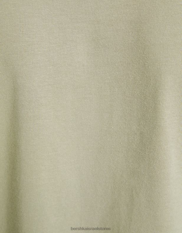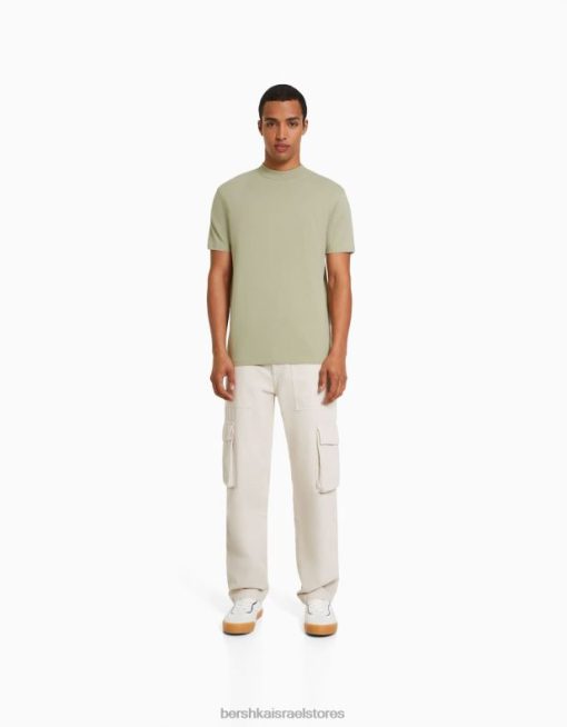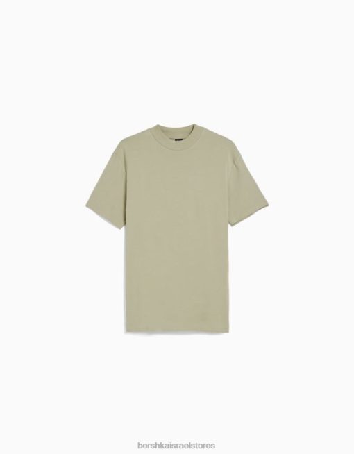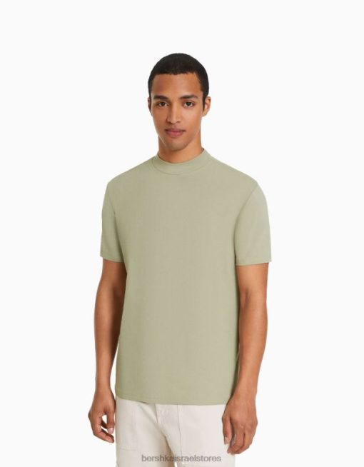 גברים חולצת טי עם שרוולים קצרים עם צווארון גבוה ירוק 2L6JD2743 Bershka הַלבָּשָׁה