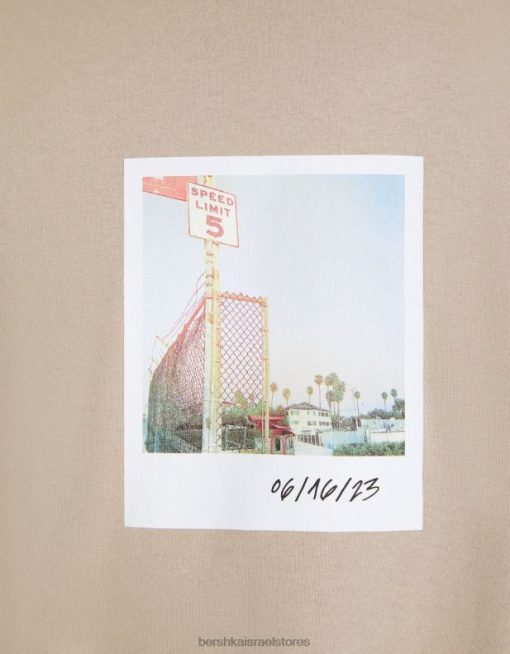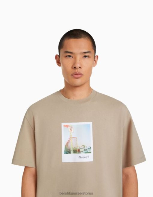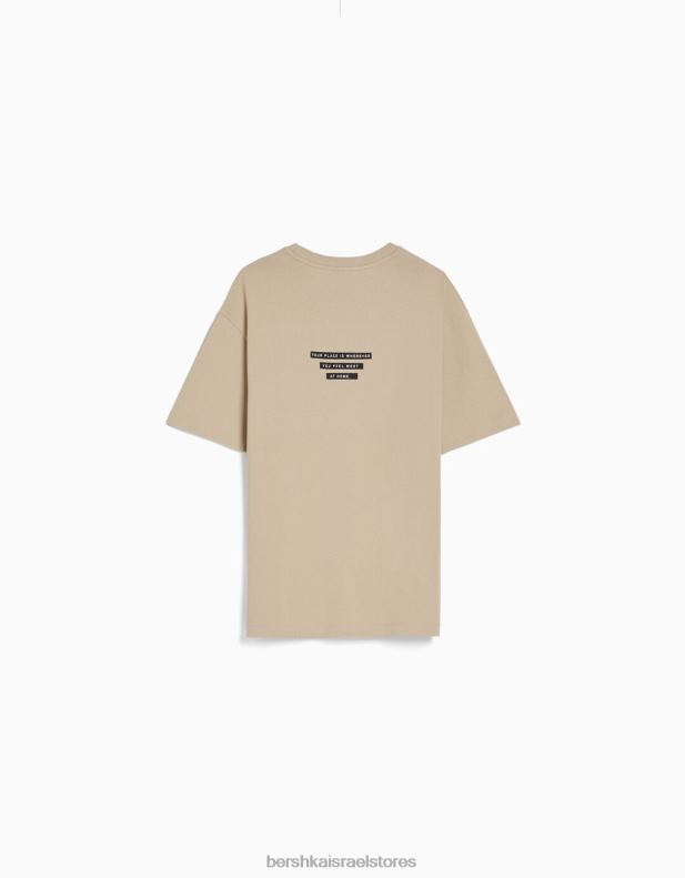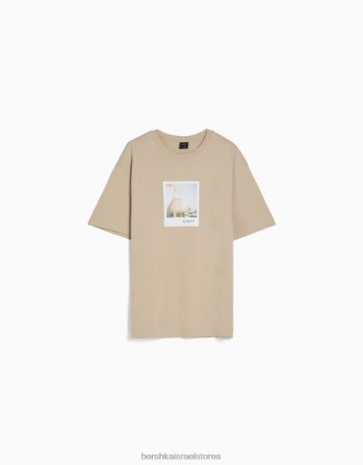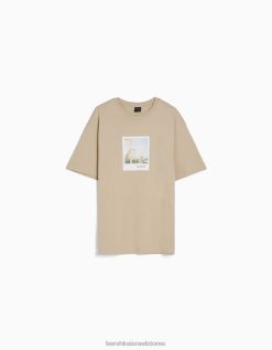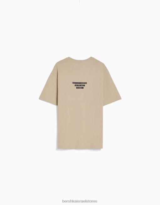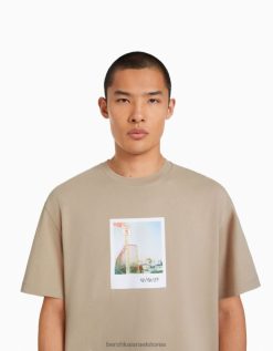 גברים חולצת טי שרוול קצר עם הדפס גָמָל 2L6JD2605 Bershka הַלבָּשָׁה