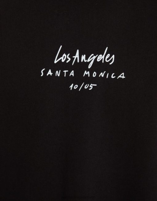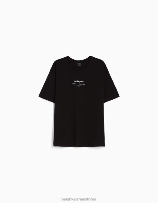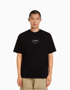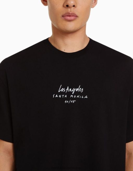 גברים חולצת טי שרוול קצר עם הדפס שָׁחוֹר 2L6JD2606 Bershka הַלבָּשָׁה
