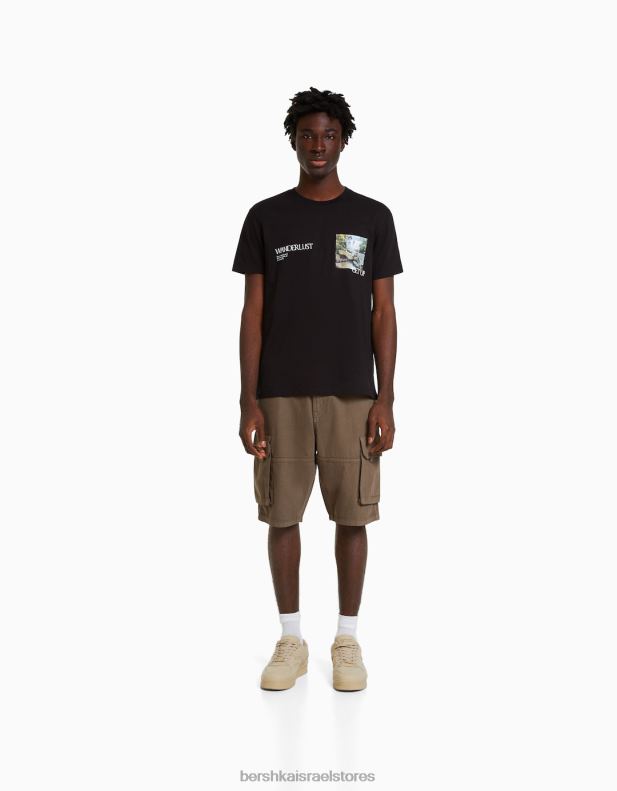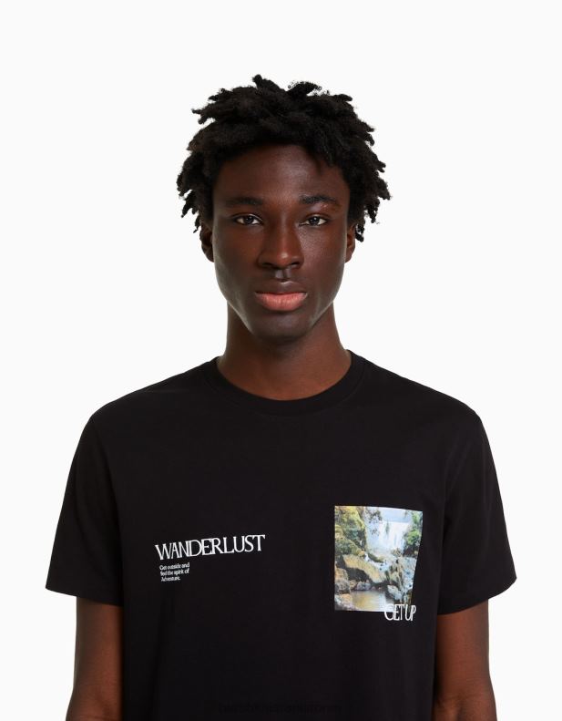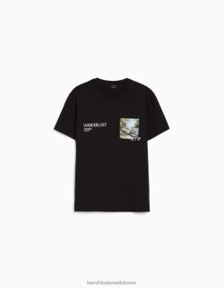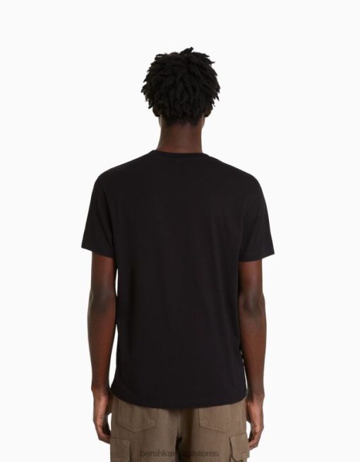 גברים חולצת טי שרוול קצר עם הדפס שָׁחוֹר 2L6JD2799 Bershka הַלבָּשָׁה