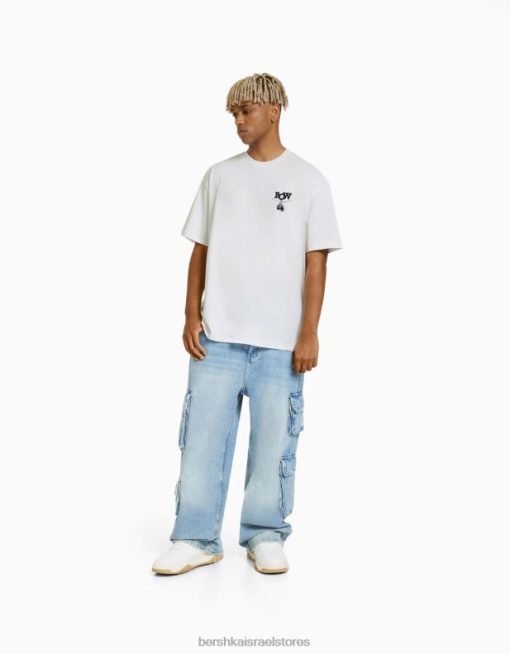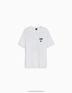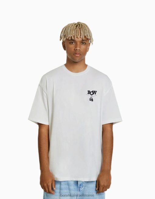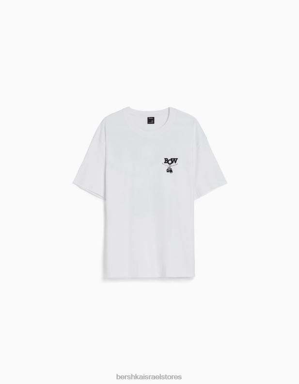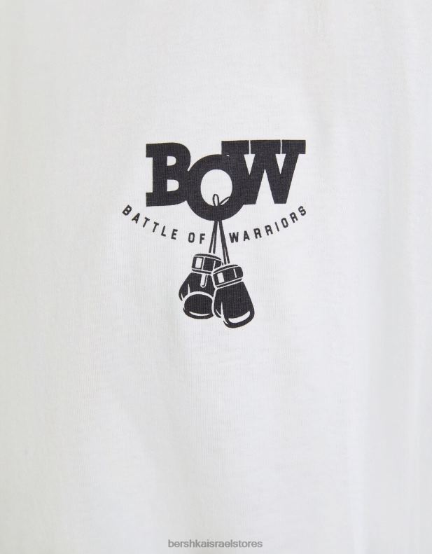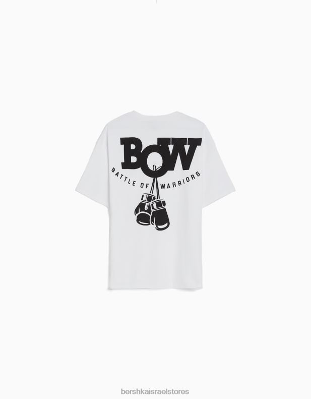 גברים חולצת טריקו בגזרת שרוולים קצרים עם הדפס אגרוף לבן 2L6JD2707 Bershka הַלבָּשָׁה