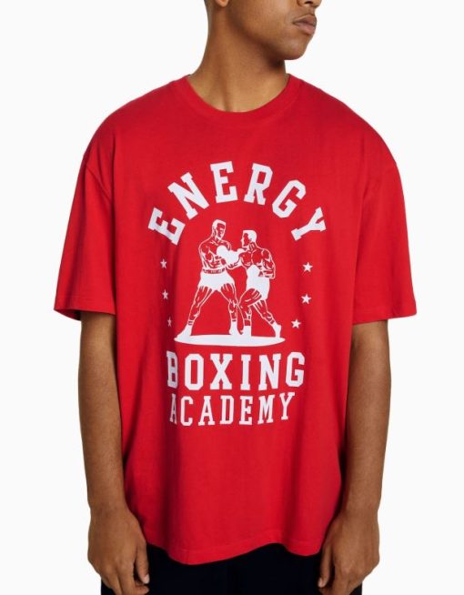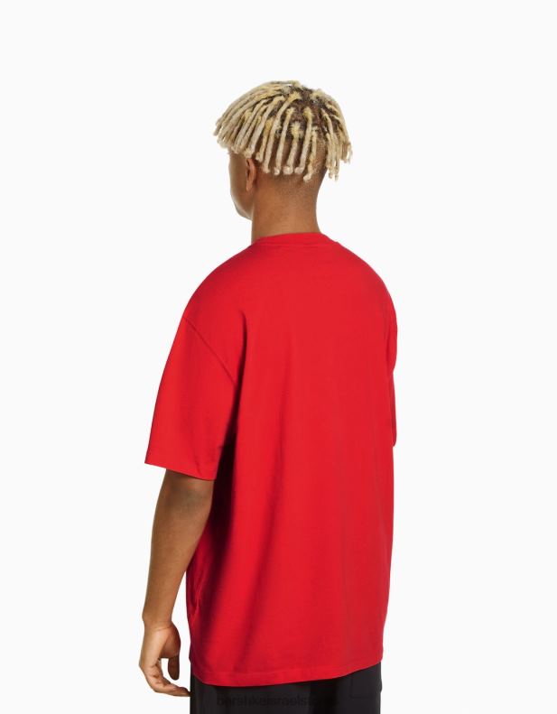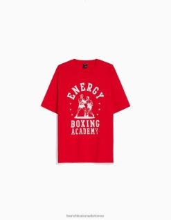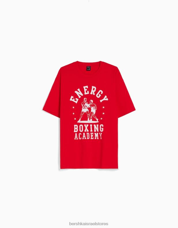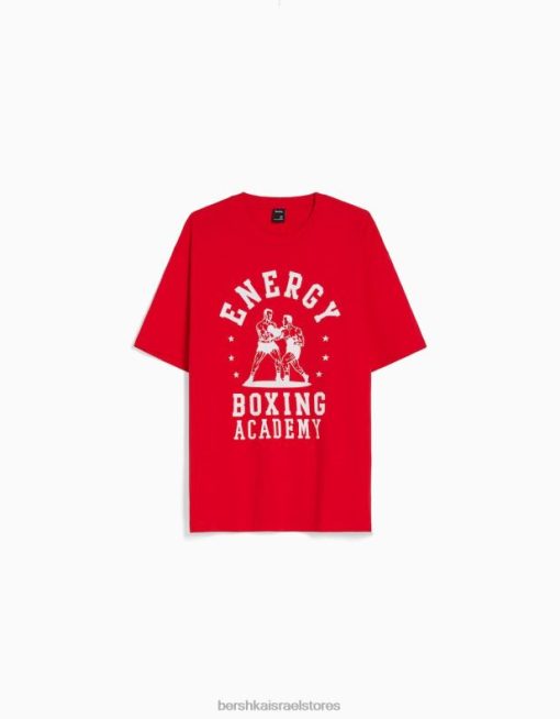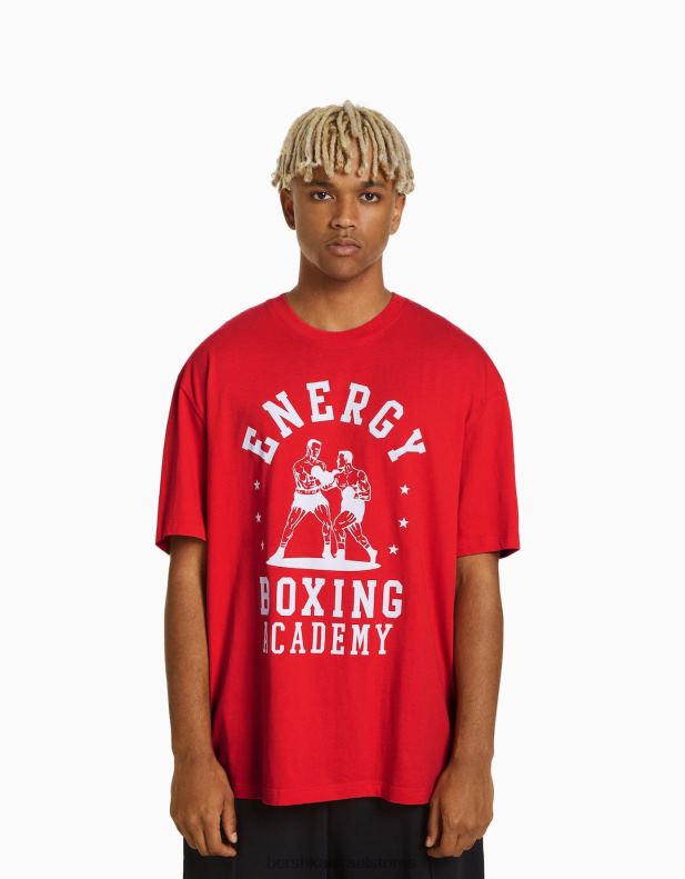 גברים חולצת טריקו בגזרת שרוולים קצרים עם הדפס אגרוף אָדוֹם 2L6JD2706 Bershka הַלבָּשָׁה