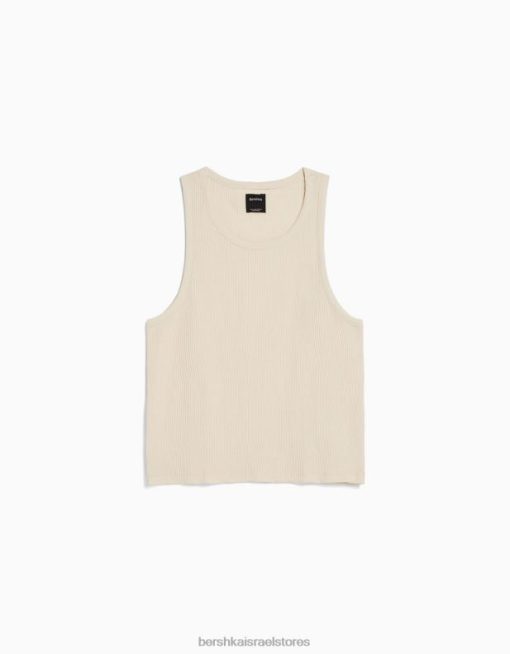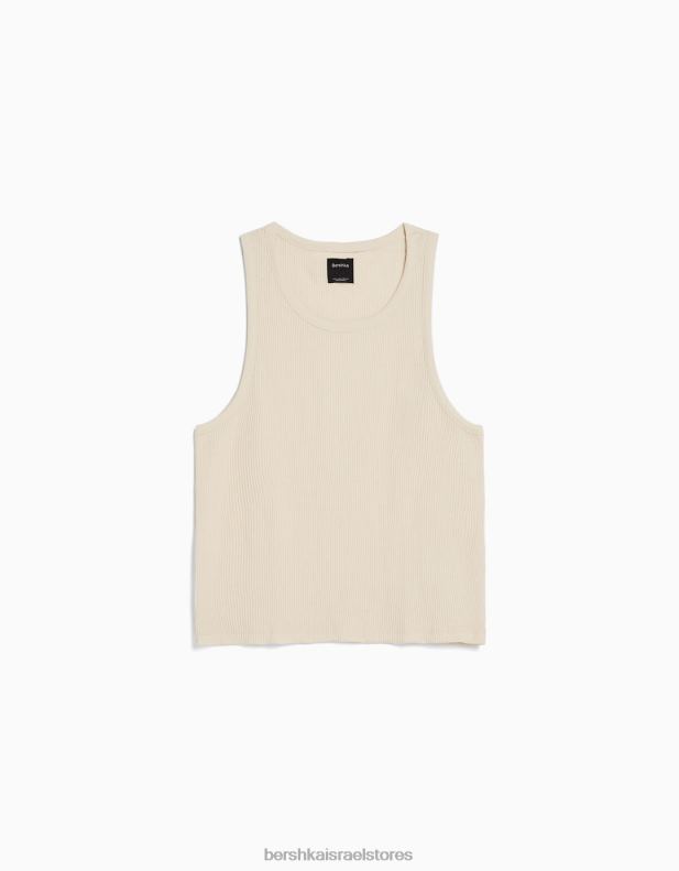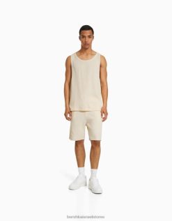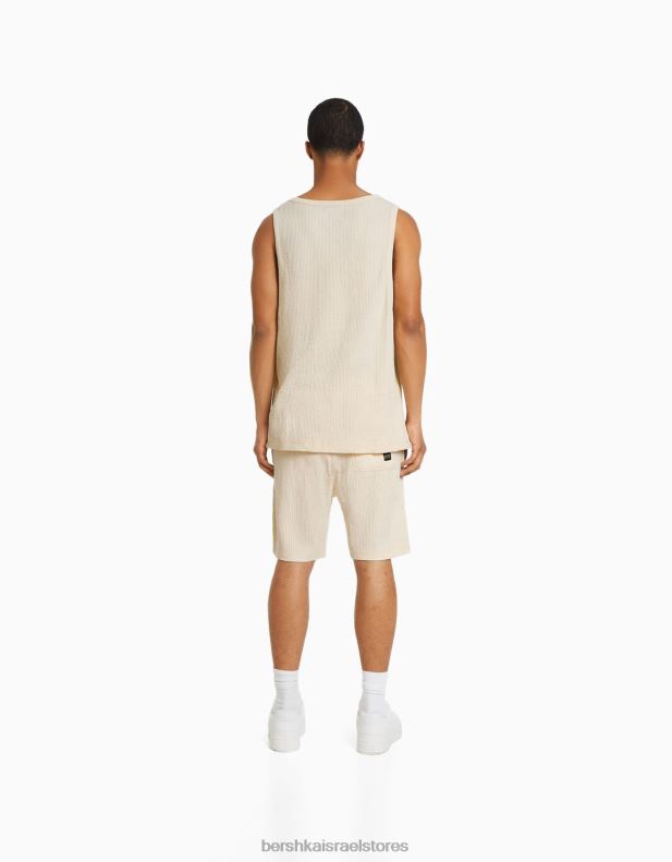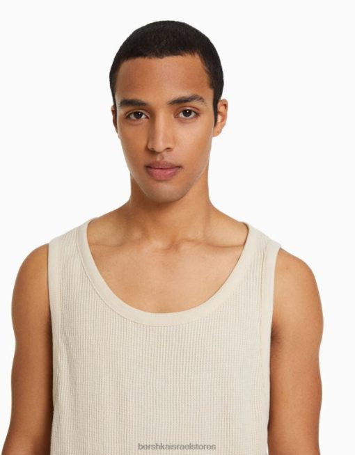 גברים חולצת טריקו ללא שרוולים בהתאמה בסגנון בונה צבע קרם 2L6JD2838 Bershka הַלבָּשָׁה