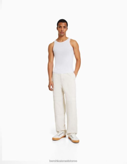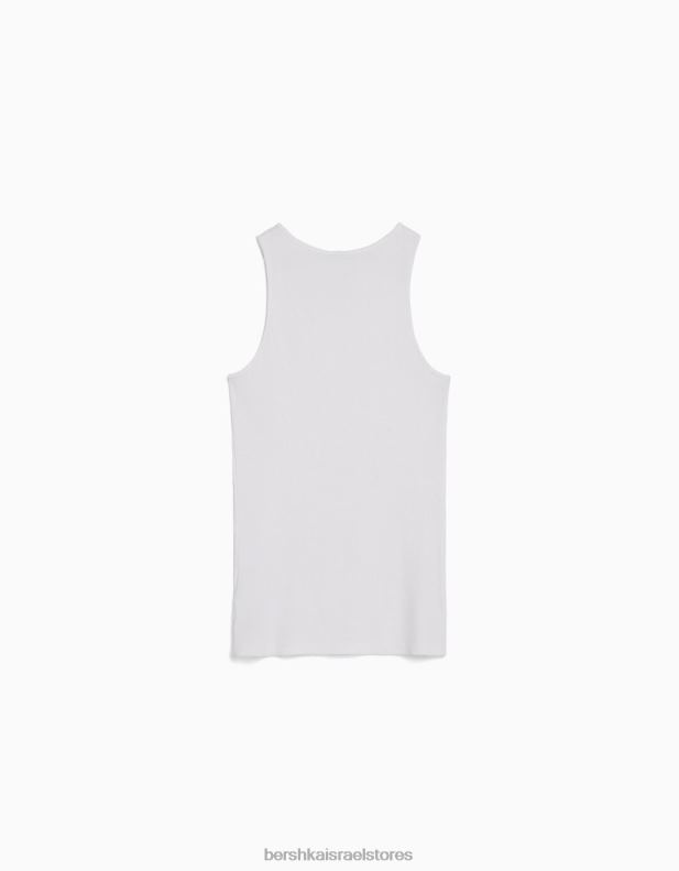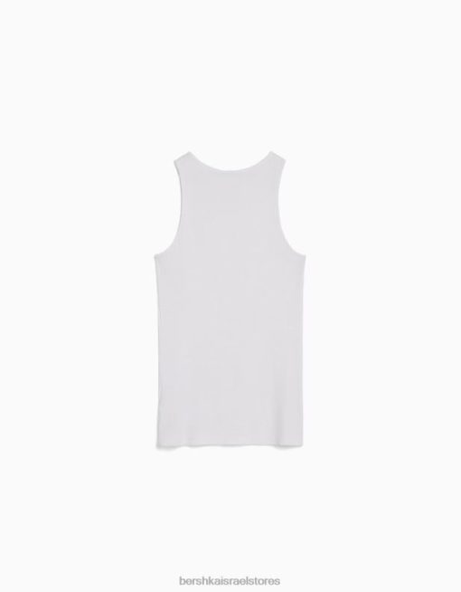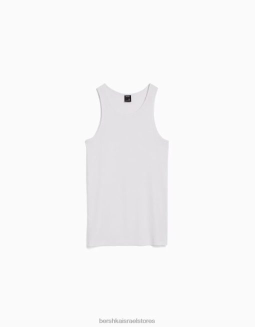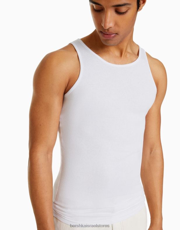 גברים חולצת טריקו ללא שרוולים עם צלעות לבן 2L6JD2666 Bershka הַלבָּשָׁה