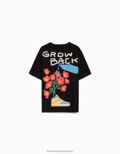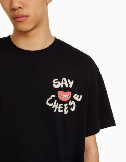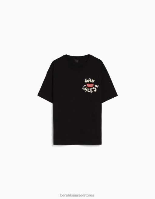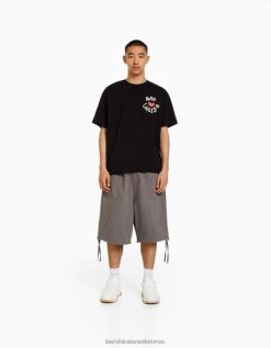 גברים חולצת טריקו מודפסת עם שרוולים קצרים שָׁחוֹר 2L6JD2636 Bershka הַלבָּשָׁה