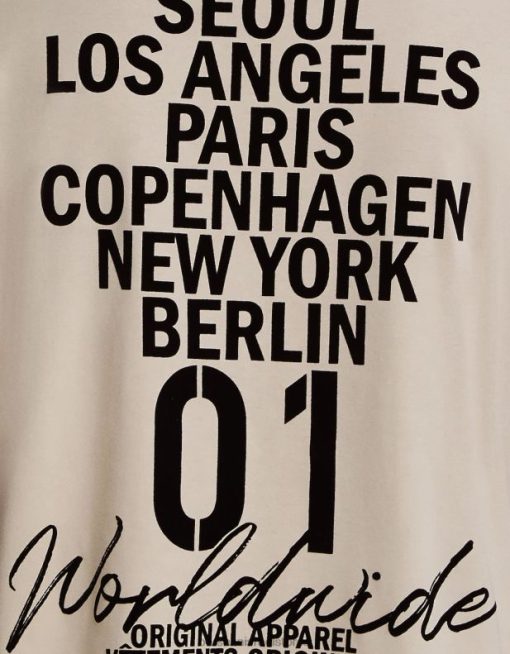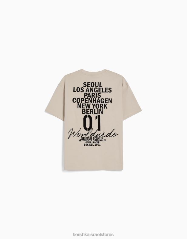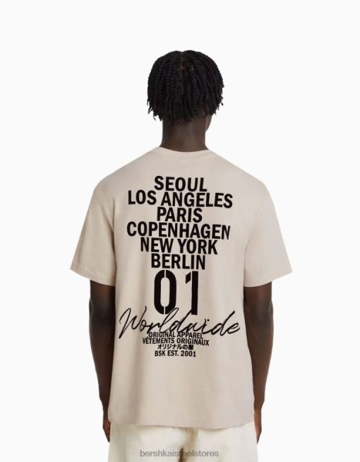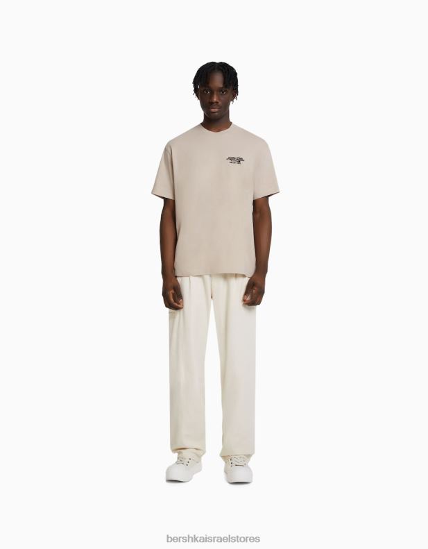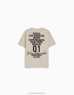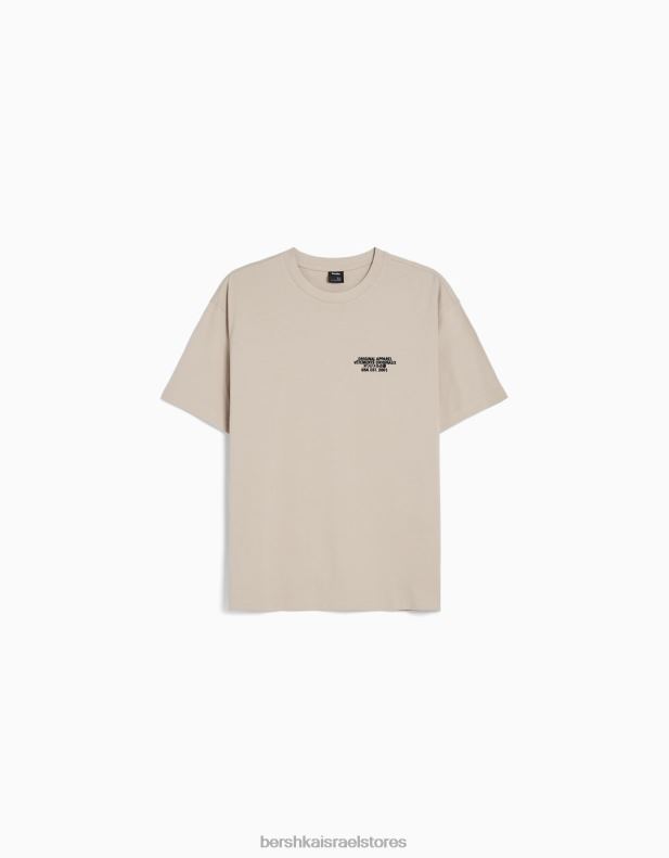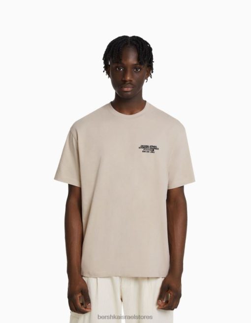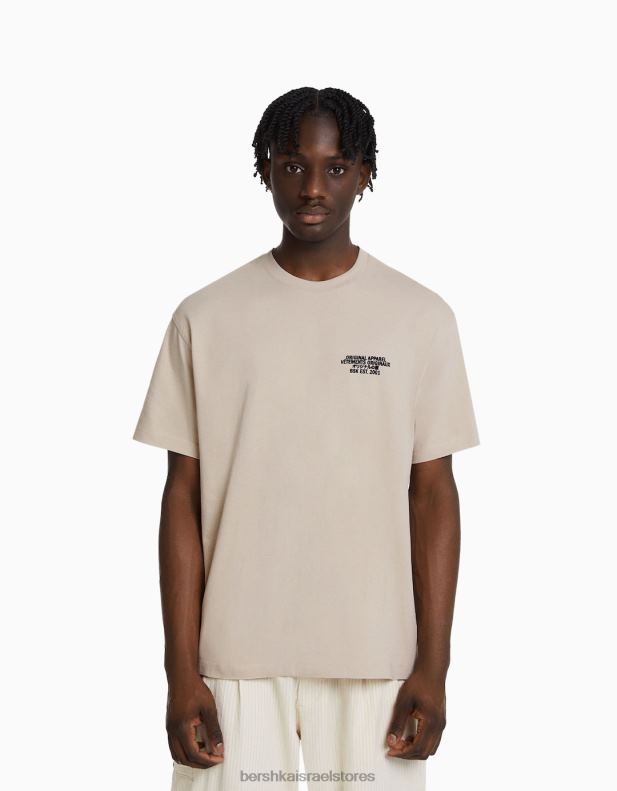 גברים חולצת טריקו מודפסת עם שרוולים קצרים גָמָל 2L6JD2655 Bershka הַלבָּשָׁה