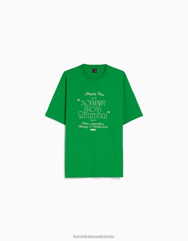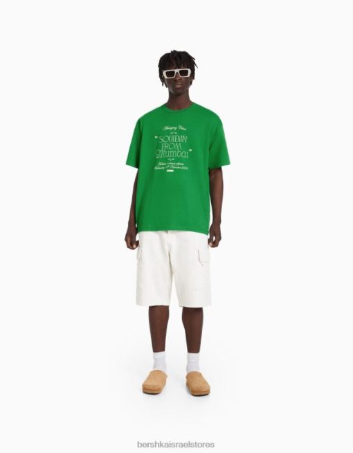 גברים חולצת טריקו מודפסת עם שרוולים קצרים ירוק 2L6JD2730 Bershka הַלבָּשָׁה