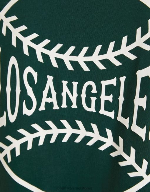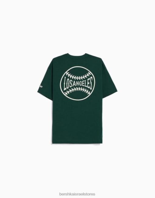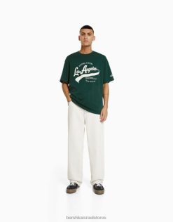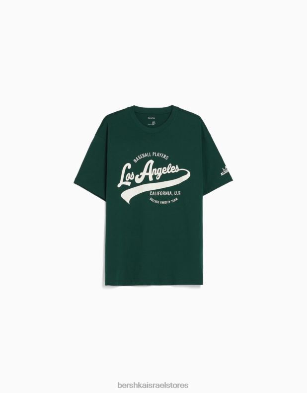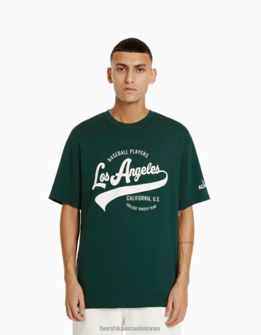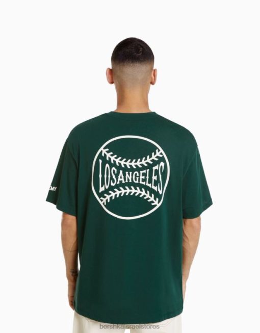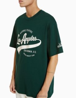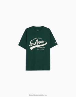 גברים חולצת טריקו מודפסת עם שרוולים קצרים ירוק 2L6JD2843 Bershka הַלבָּשָׁה