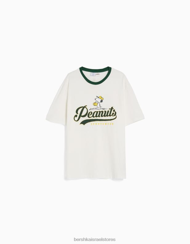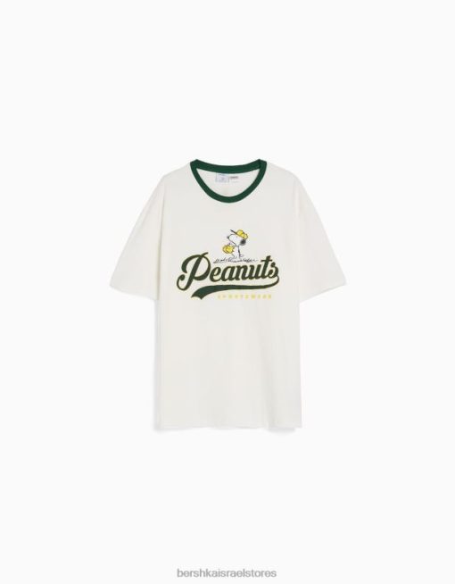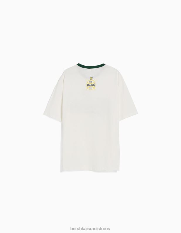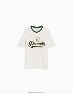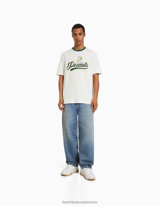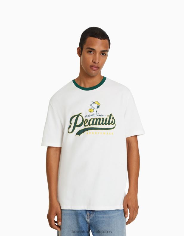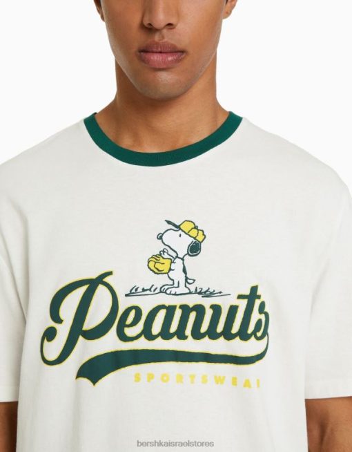 גברים חולצת טריקו עם שרוולים קצרים בהדפס סנופי לבן 2L6JD2755 Bershka הַלבָּשָׁה