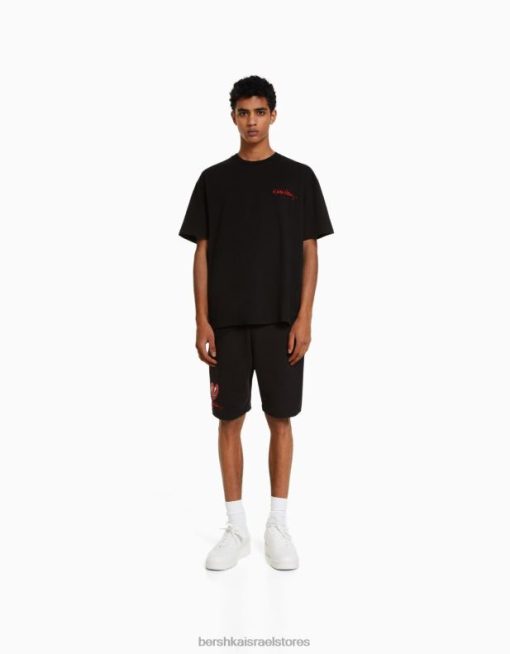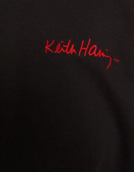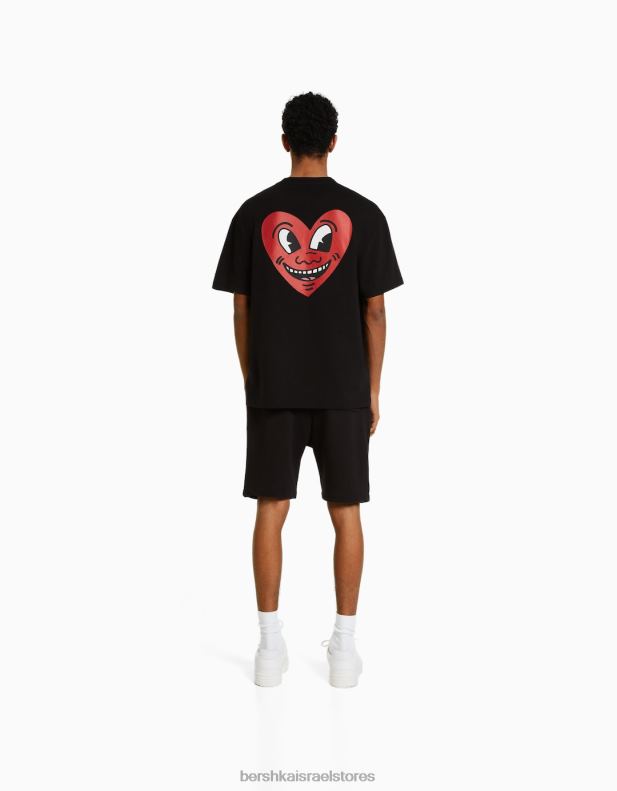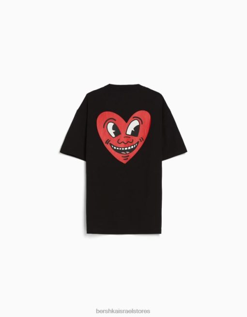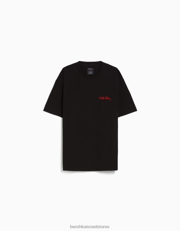 גברים חולצת טריקו עם שרוולים קצרים בהדפסה של קית הרינג שָׁחוֹר 2L6JD2601 Bershka הַלבָּשָׁה
