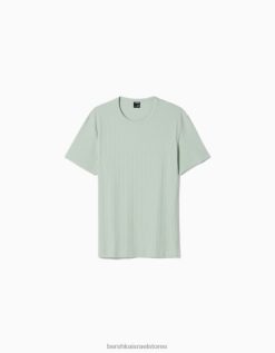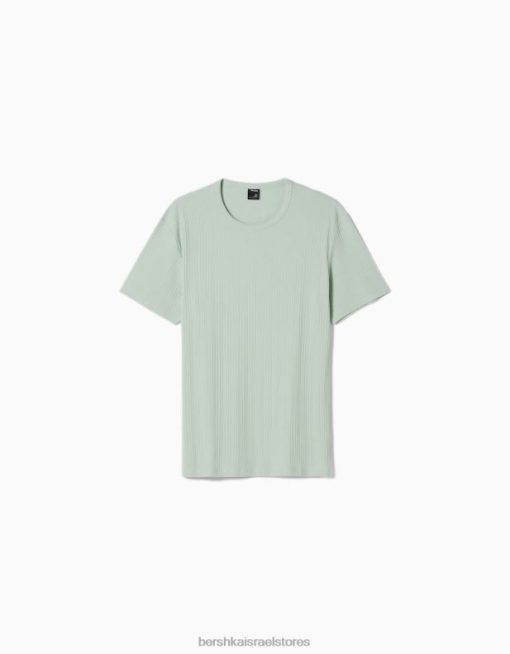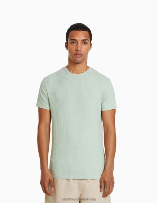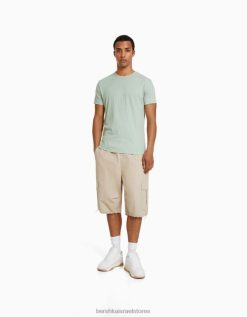 גברים חולצת טריקו עם שרוולים קצרים בכושר שריר ירוק 2L6JD2736 Bershka הַלבָּשָׁה
