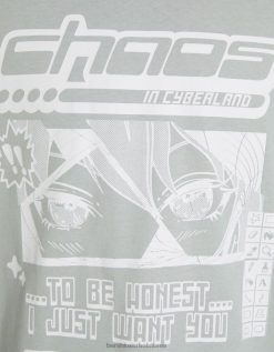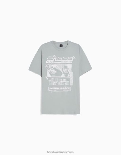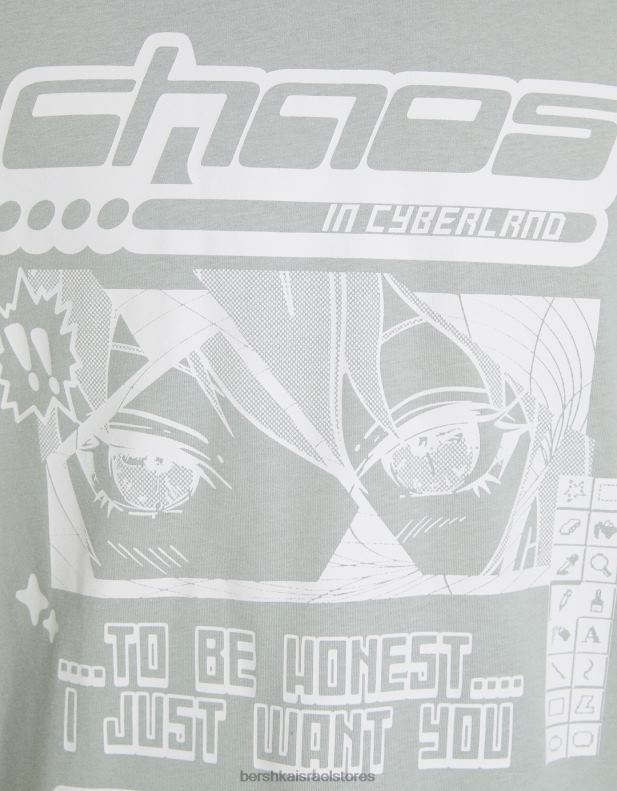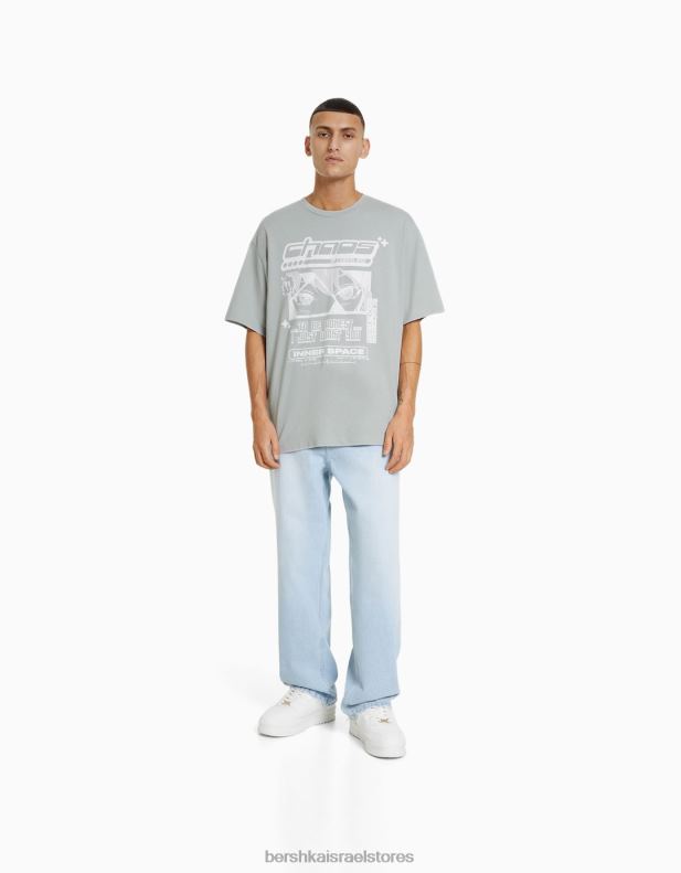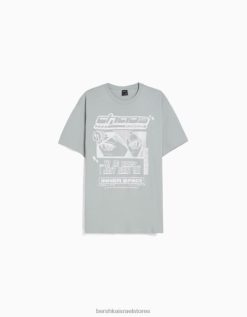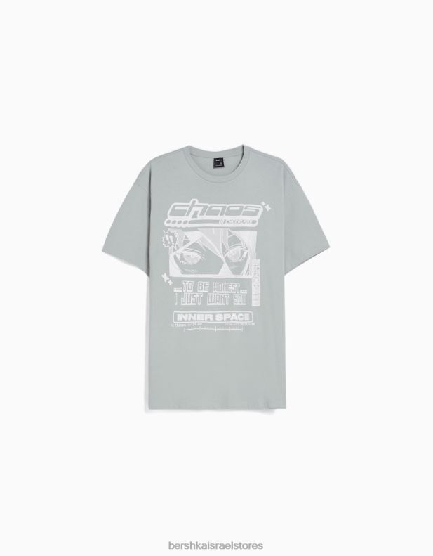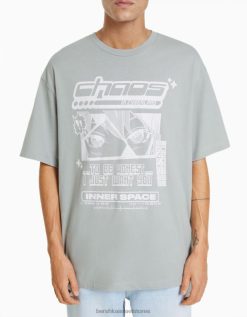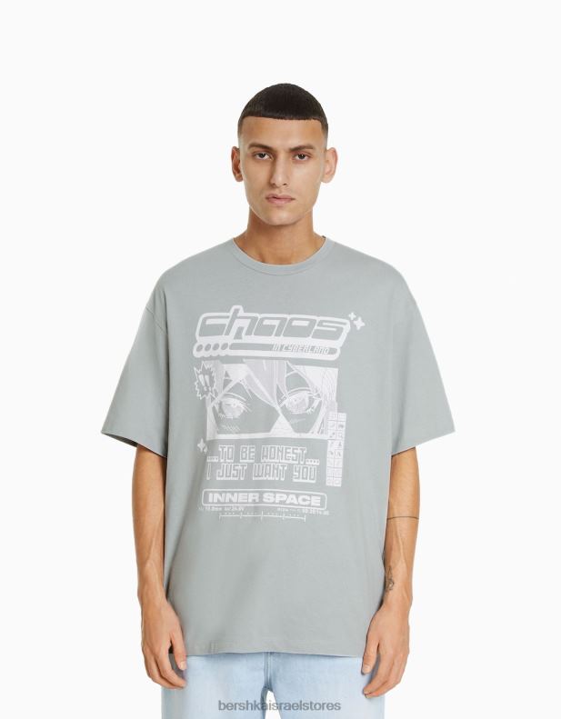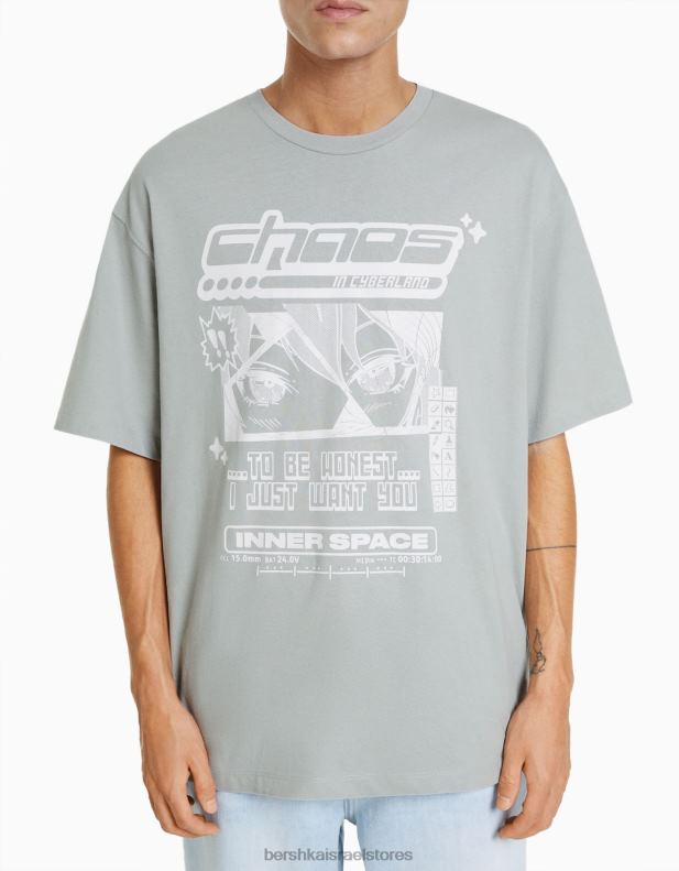 גברים חולצת טריקו עם שרוולים קצרים משנות ה-90 עם הדפס אנימה גָמָל 2L6JD2732 Bershka הַלבָּשָׁה