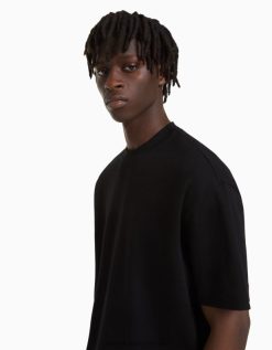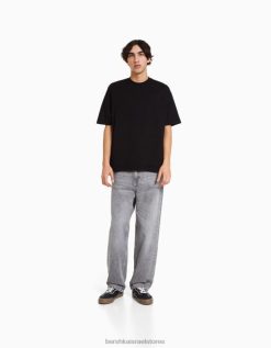 גברים חולצת טריקו עם שרוולים קצרים שָׁחוֹר 2L6JD2751 Bershka הַלבָּשָׁה