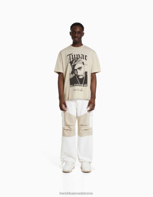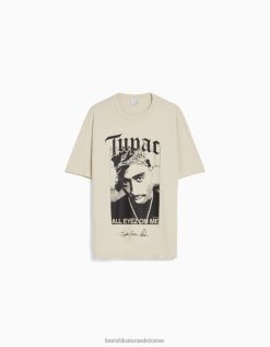 גברים חולצת טריקו עם שרוול קצר בהדפס טופאק גָמָל 2L6JD2723 Bershka הַלבָּשָׁה