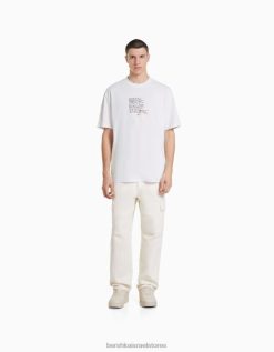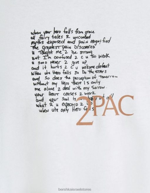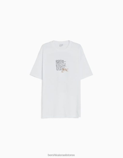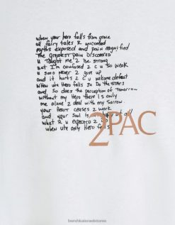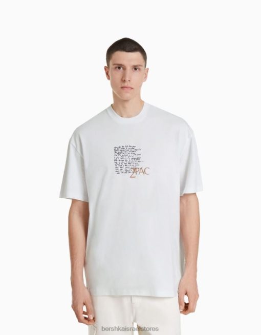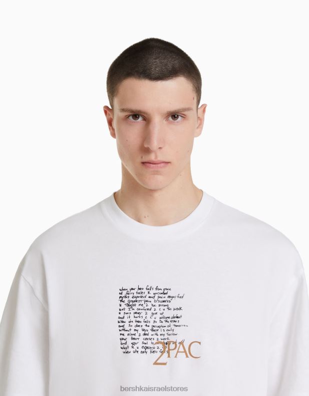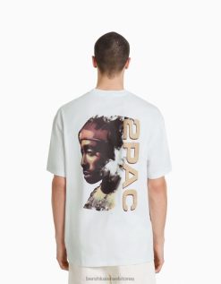 גברים חולצת טריקו עם שרוול קצר בהדפס טופאק לבן 2L6JD2725 Bershka הַלבָּשָׁה
