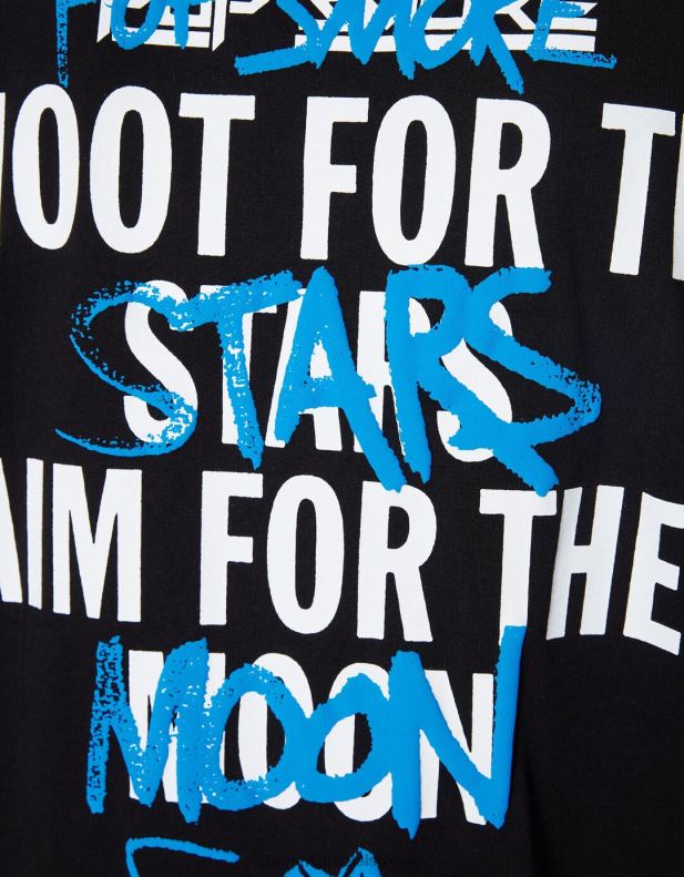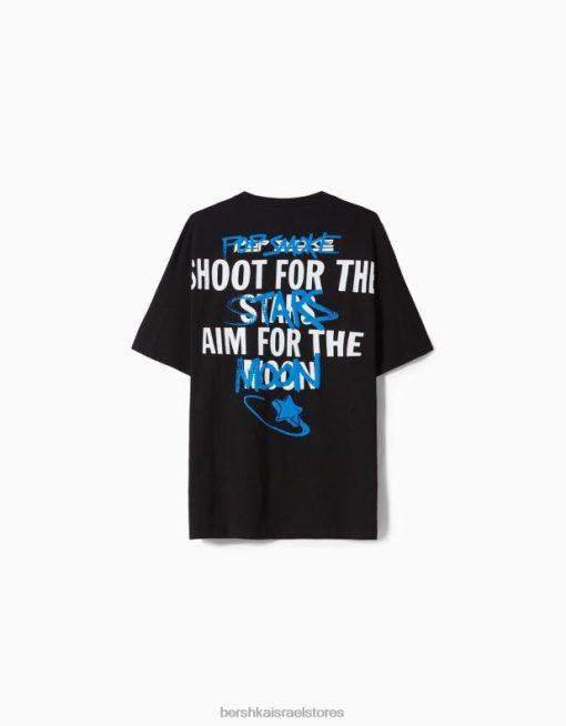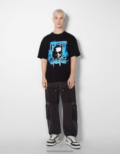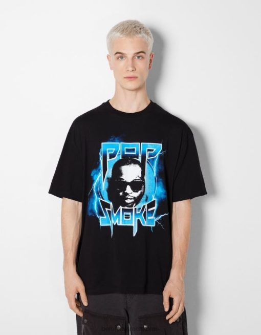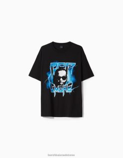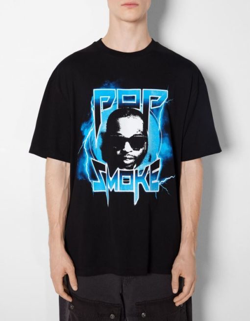 גברים חולצת טריקו עם שרוול קצר בהדפס פופ עשן שָׁחוֹר 2L6JD2699 Bershka הַלבָּשָׁה