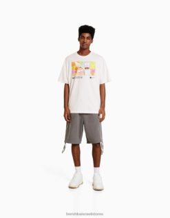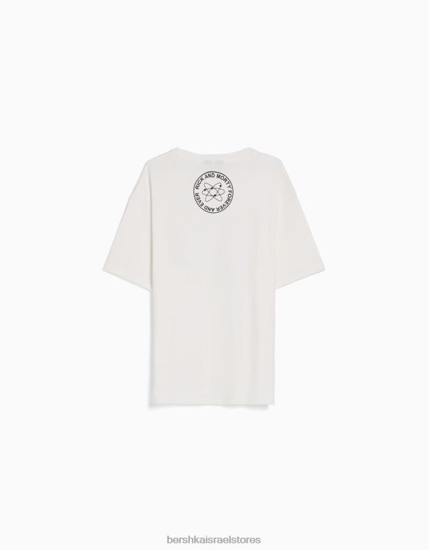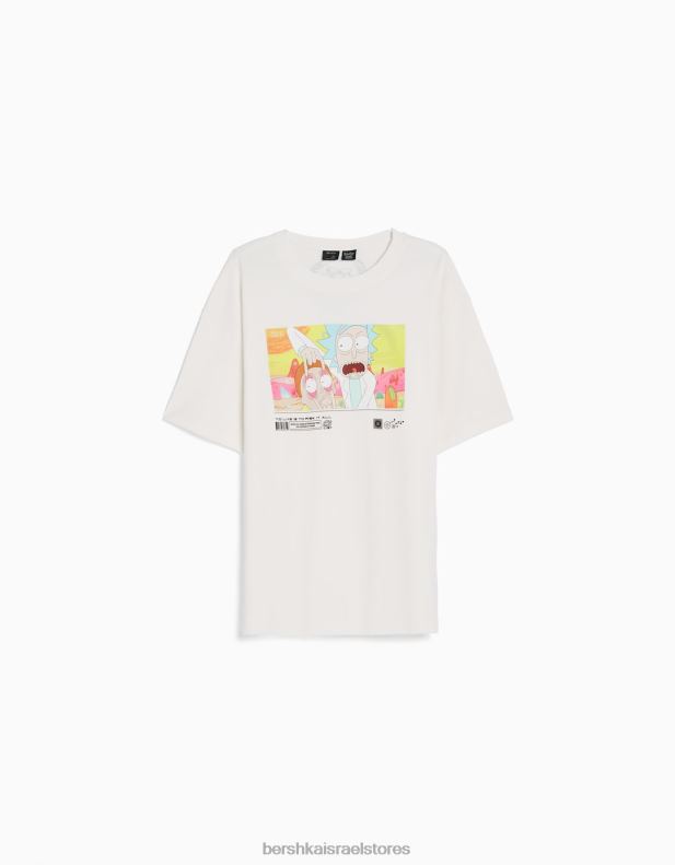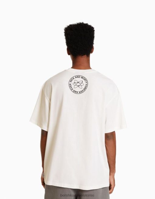 גברים חולצת טריקו עם שרוול קצר בהדפס ריק & מורטי לבן 2L6JD2856 Bershka הַלבָּשָׁה